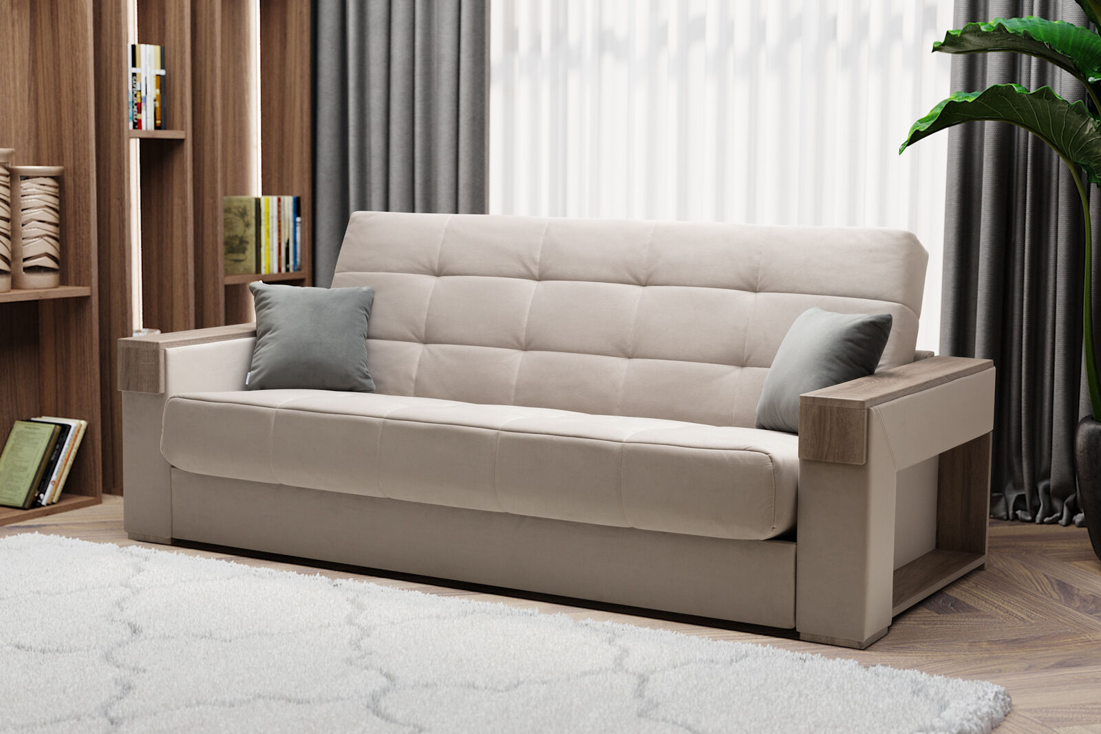 Диван Аризона БД Generation105 Дымчатый орех - используется улучшенная модификация механизма «выкатная книжка» с роликами на выдвигаемой части, облегчающими процесс раскладывания и двумя положениями фиксации спинки. Специальная простежка чехла не позволяет дивану утратить свою форму в процессе эксплуатации. «Мебель поставляется в разобранном виде».