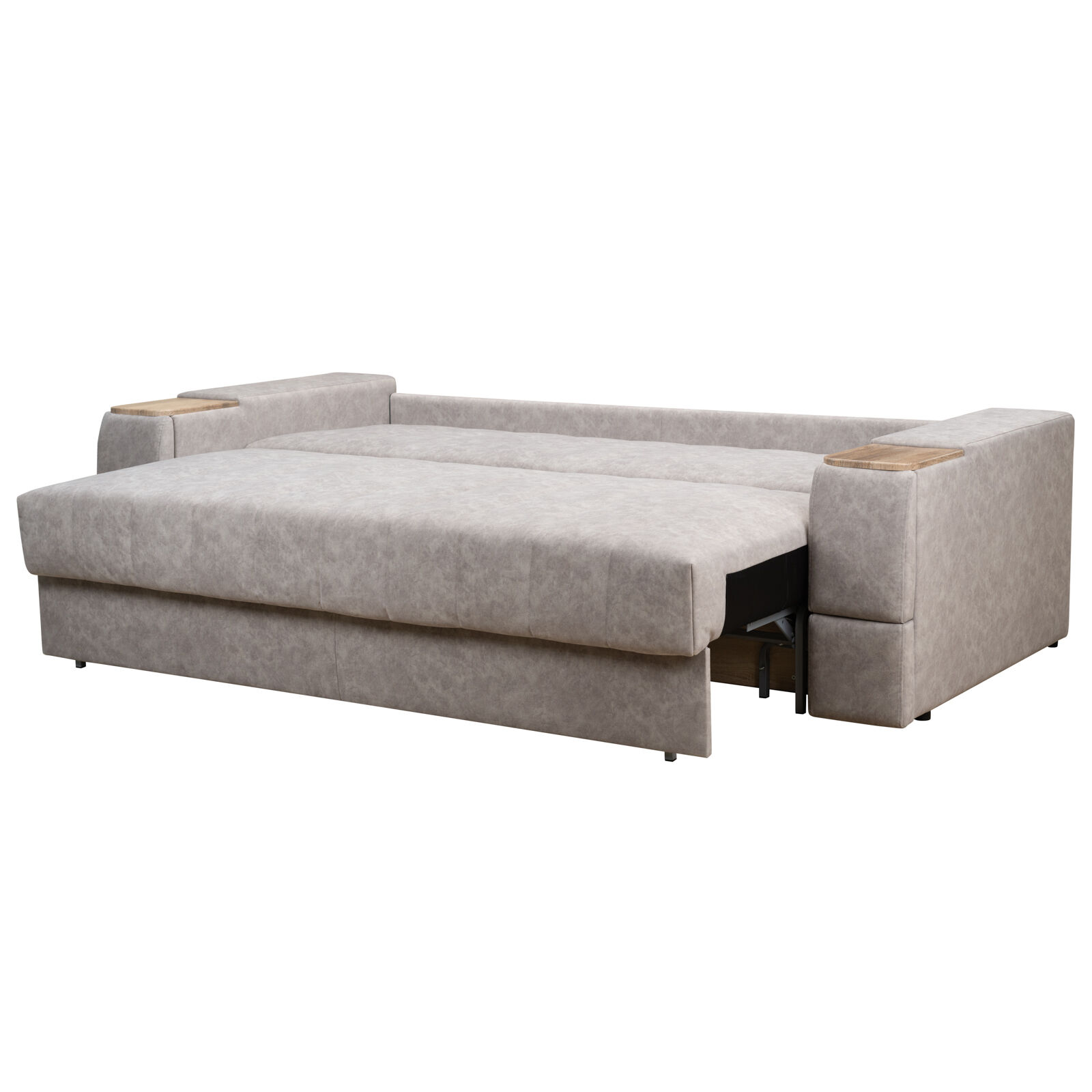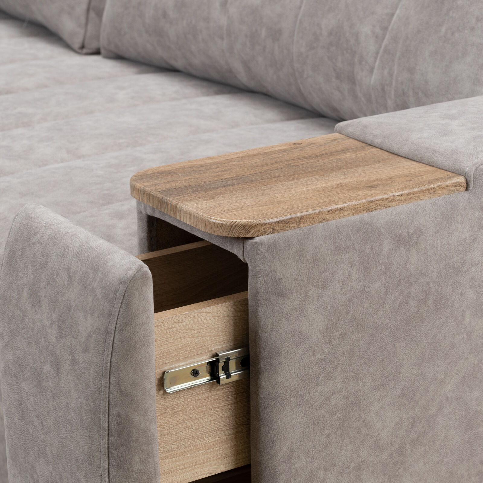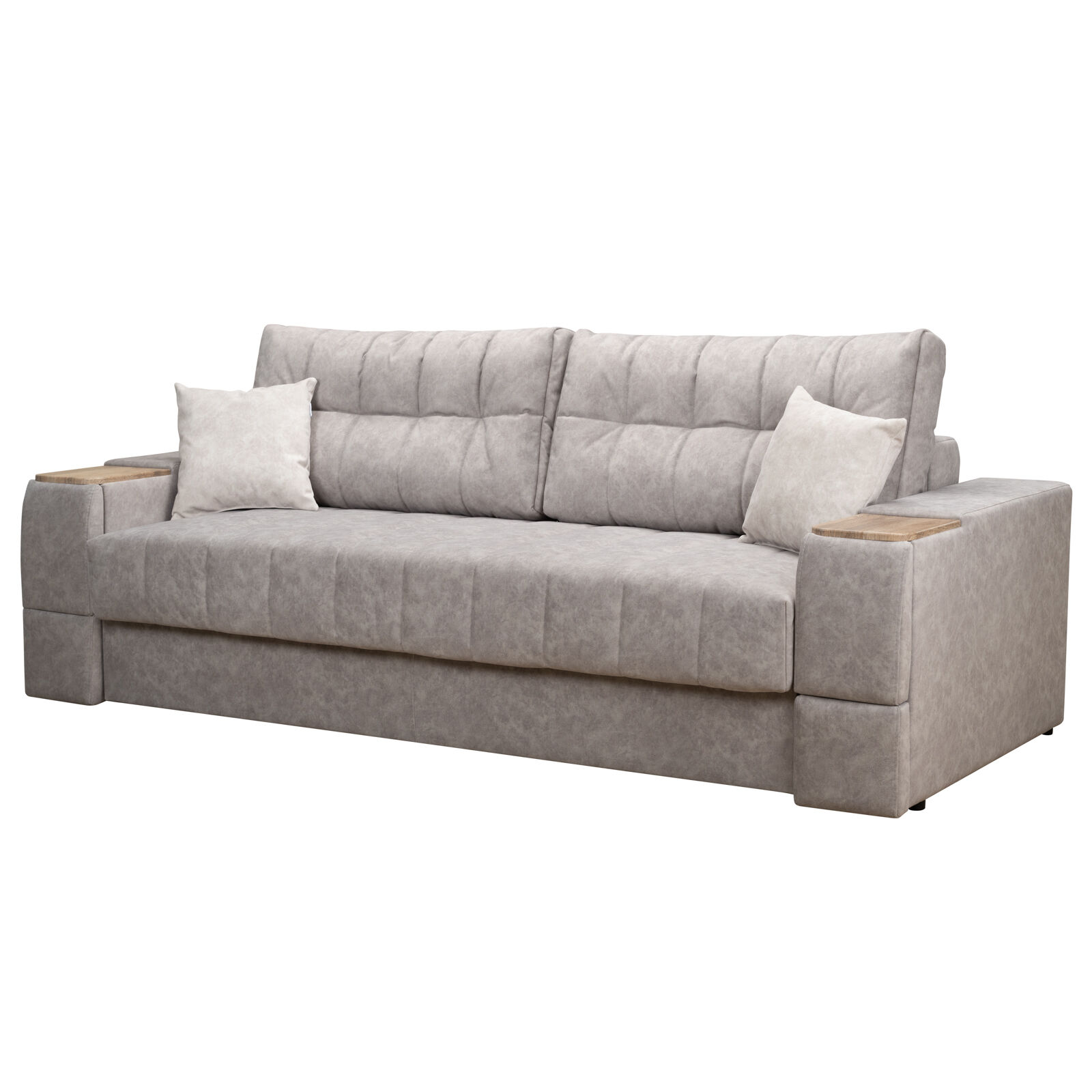 Диван «Камелот 4 БД НПБ-NAPPA 02 Сонома» оснащен выдвижным столиком из подлокотника, что позволяет комфортно отдохнуть после рабочего дня. Другой подлокотник оборудован выдвижными ящиками для хранения различных вещей. Такая мебель значительно экономит пространство в помещении и несомненно делает отдых на диване комфортнее, ведь буквально под рукой есть стол, на который можно поставить бокал, положить книгу или журнал. «Мебель поставляется в разобранном виде».