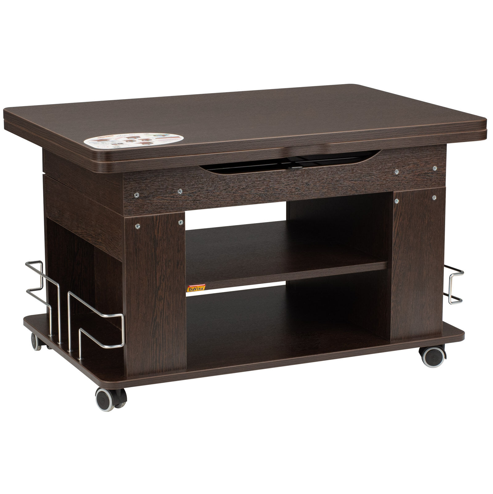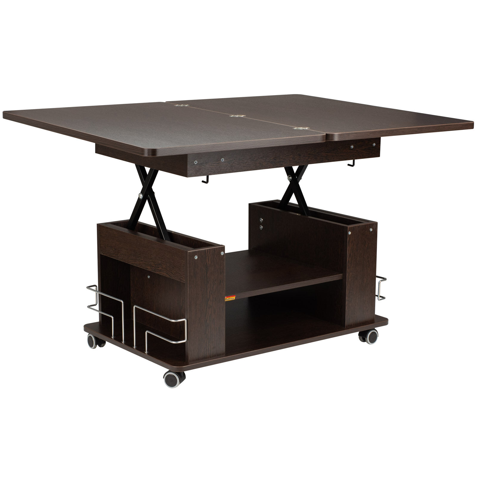 Многофункциональная модель, которая сочетает в себе функции журнального и обеденного стола. Cтолешница легко поднимается до высоты 75 см за счет механизма подъема и увеличивается вдвое, благодаря поворотному механизму. ШхГхВ 900/1200x600/900x550/750