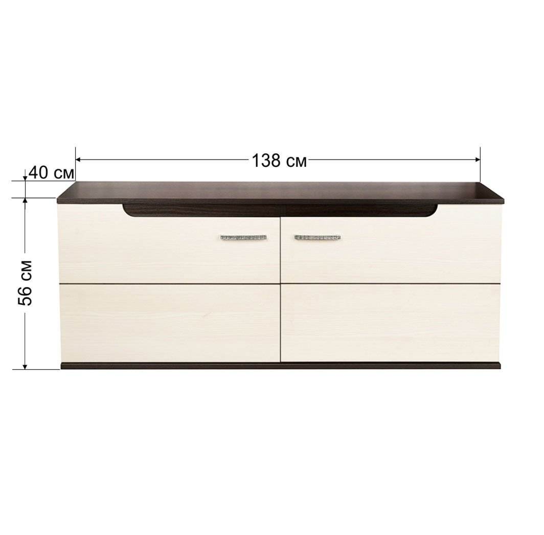 Тумба ТВ с местом под телевизор до 52 дюйма и полками за глухими фасадами. «Мебель поставляется в разобранном виде».
