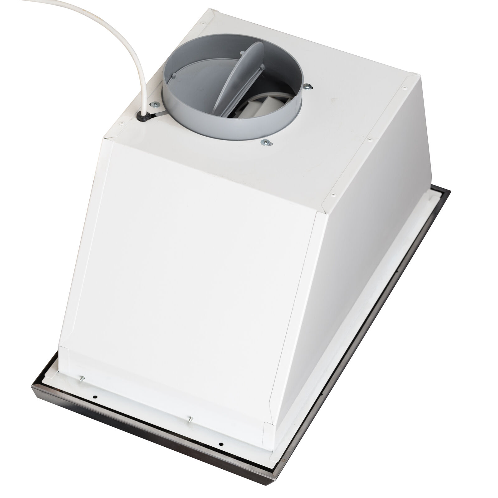 ELICOR Врезной блок 60Н650ЭЗГ из высококачественной нержавейки работает на удобном и оптимальном механическом управлении в виде кнопок. В наличии возможность выбирать наиболее подходящий уровень мощности из трех присутствующих режимов. Модели мощностью включения 255 Вт характерны максимальная продуктивность 650 м3 в час и 58 дБ уровня шумности. Это пример отводной вытяжки с наличием специальной круглой трубы для выхода воздуха размером 150 мм в диаметре. Стильная и практичная вытяжка Elikor 60Н-650-Э3Г размером 522 х 319 х 292 мм и весом 6,75 кг подразумевает встраивание специальной секции, параметры которой составляют 458 х 260 х 259 мм. Очевидным преимуществом является наличие специальной галогенной подсветки и очень удобного и просто необходимого алюминиевого фильтра, который защищает вытяжку от попадания в нее жира.