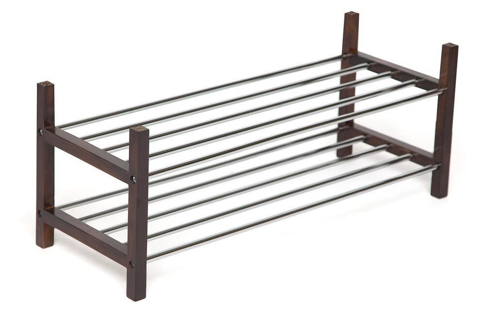 Практичная подставка для обуви SR-0939-2 имеет две полки из хромированных трубок. Боковины сделаны из массива сосны, полки — хромированная сталь. «Мебель поставляется в разобранном виде».