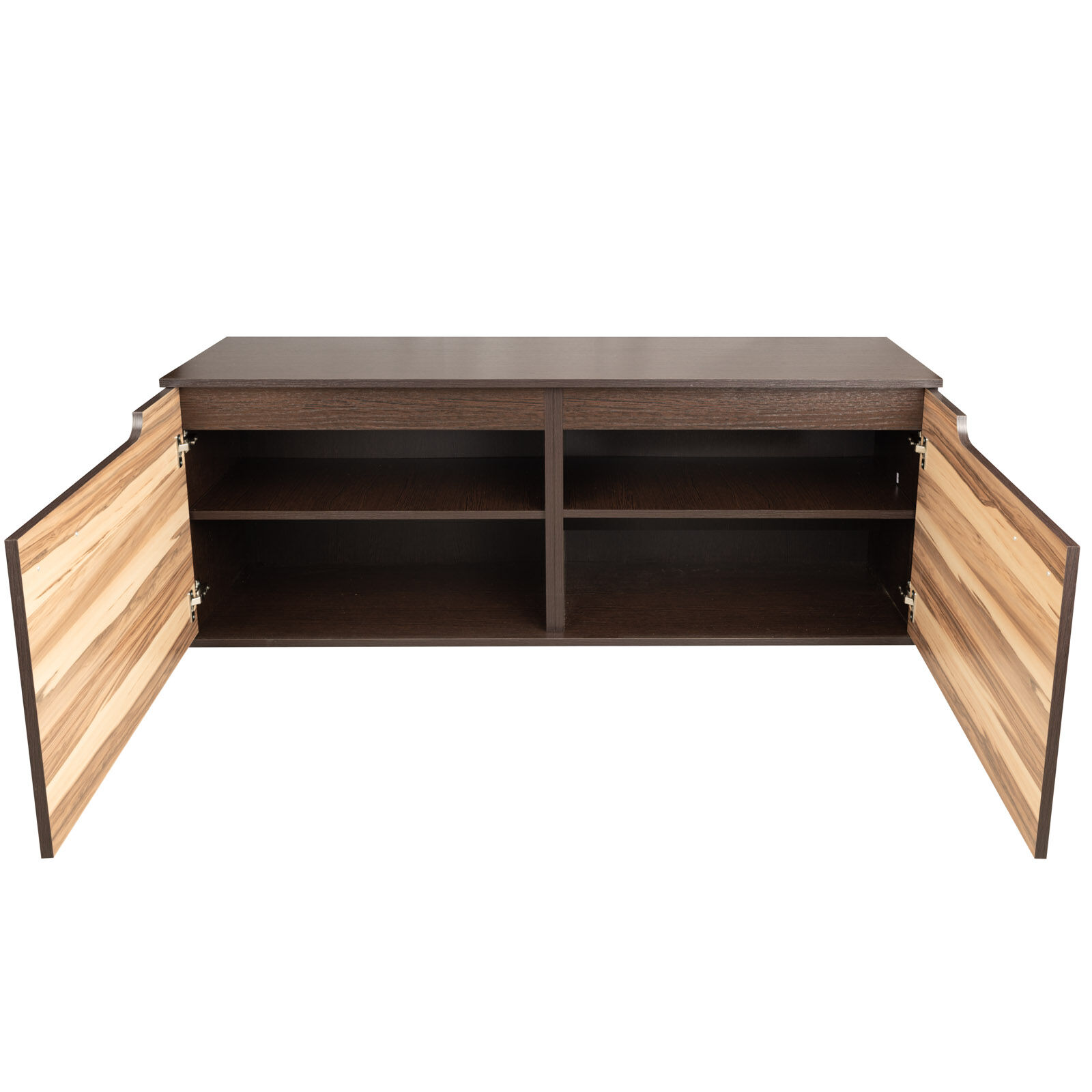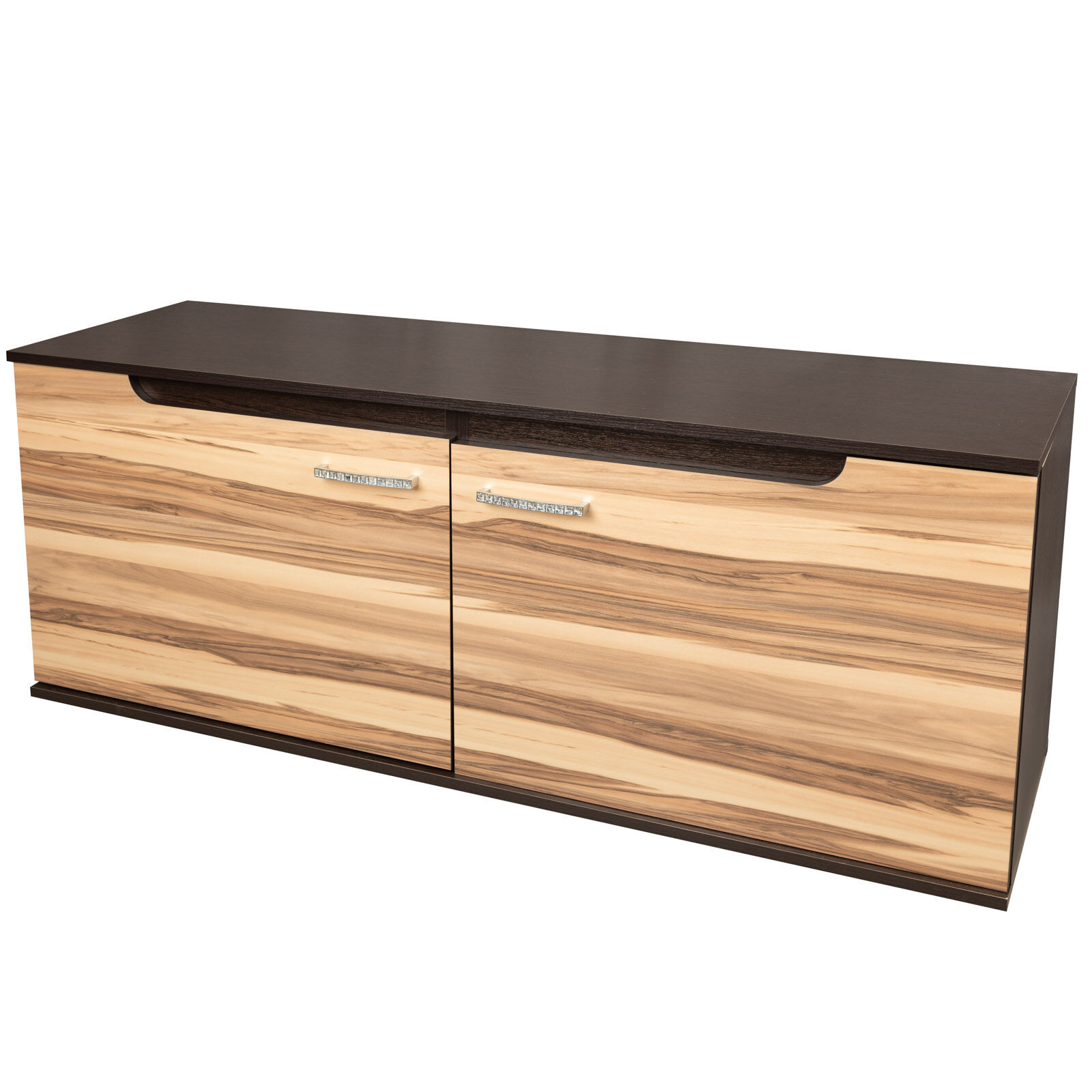 WYSPAA 3 Тумба ТВ с местом под телевизор до 52 и полками за глухими фасадами. Фасады в декоре Орех Балтимор – монолитные, без стыков. Контрастная кромка Венге, которой облицованы фасады, создает четкие видимые линии. «Мебель поставляется в разобранном виде».