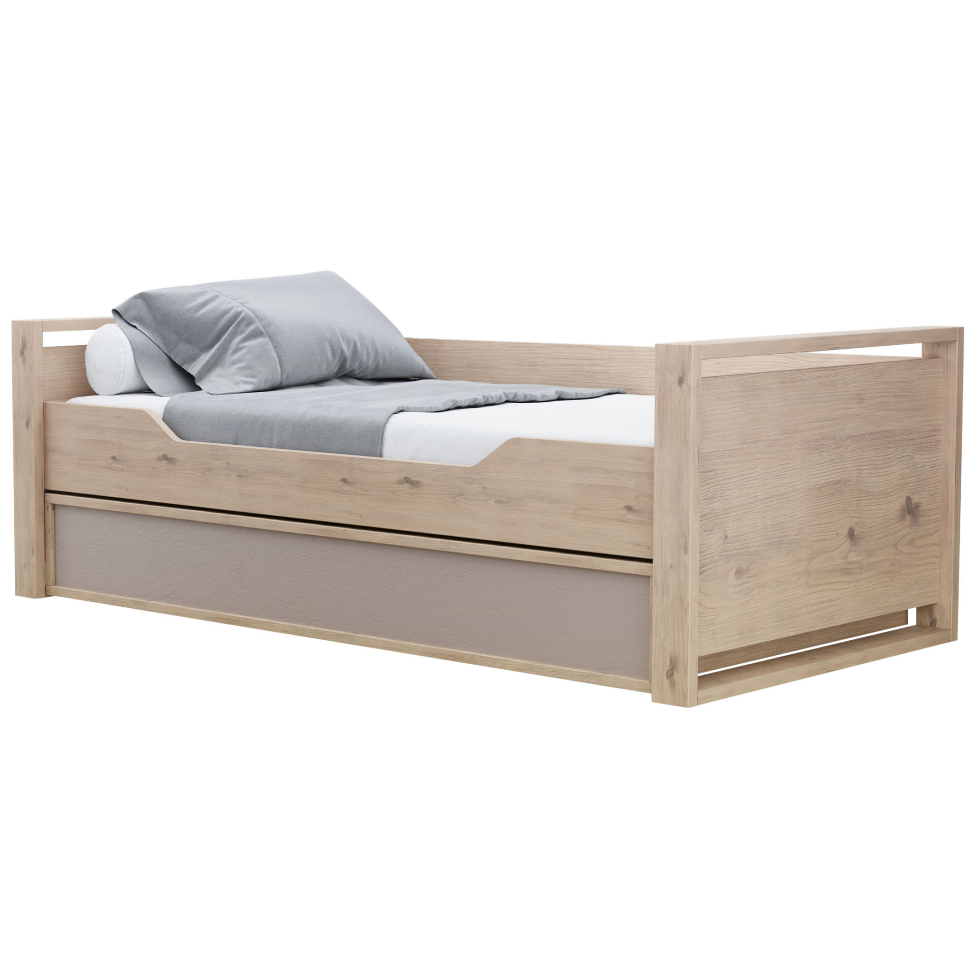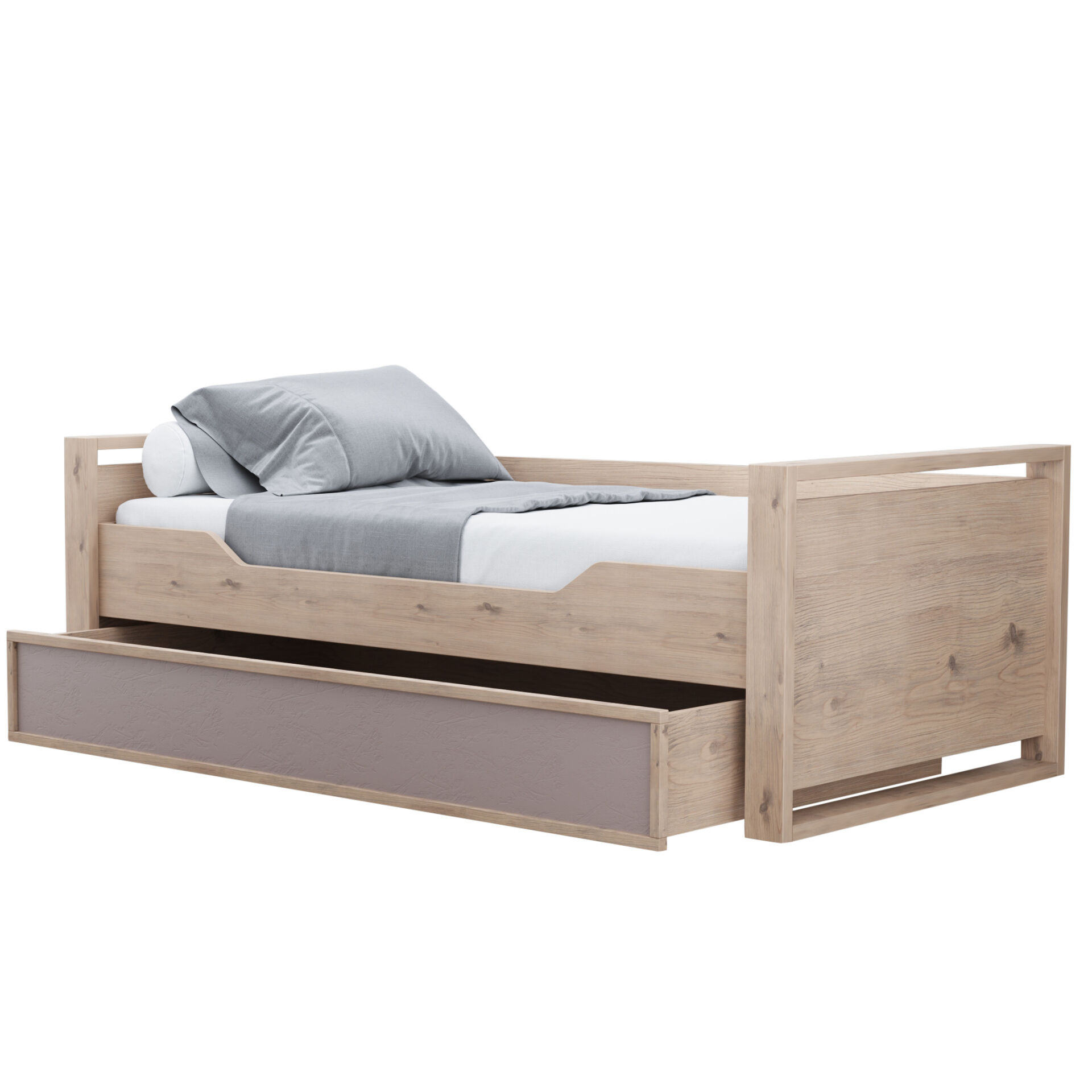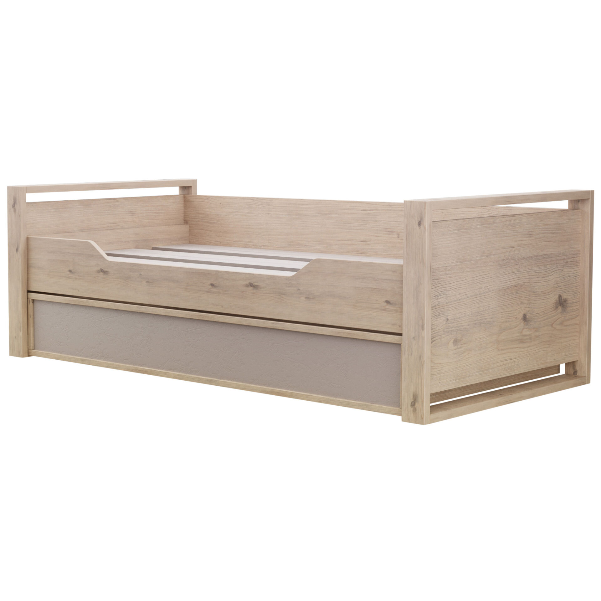 Детская или подростковая кровать «Кровать Nature 80 Гаскон Пайн Мокко» с большим ящиком глубиной 182 мм на выкатных роликах. Его можно использовать как место для хранения постельного белья или как дополнительное спальное место для незапланированных гостей. Дополнительные боковые ниши в кровати помогут подростку держать под рукой необходимые перед сном вещи. «Матрас в комплект не входит». «Мебель поставляется в разобранном виде».