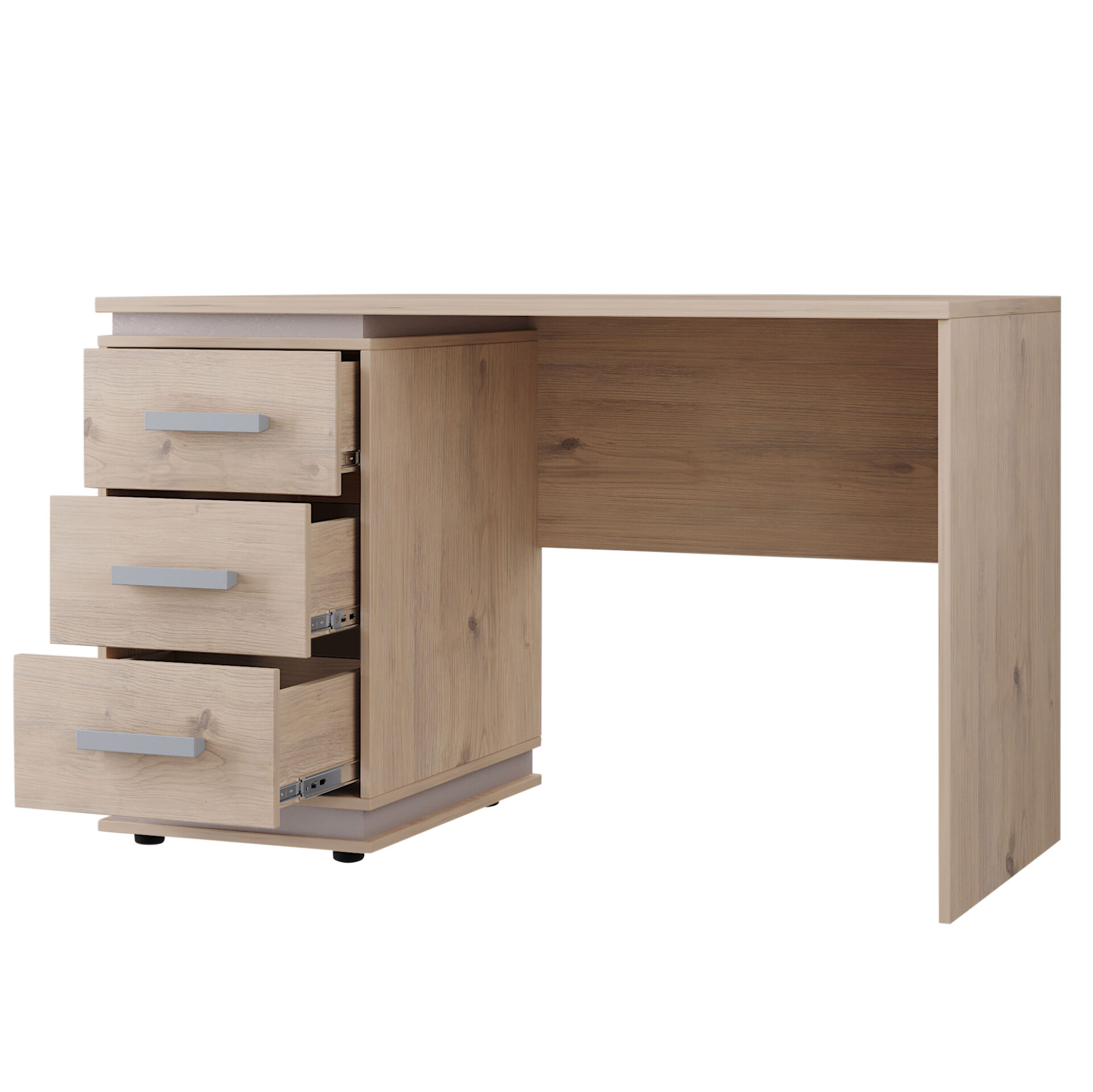 За счет просторной рабочей поверхности «Стол письменный Nature 84 Гаскон Пайн Мокко» одинаково удобен как для левши, так и для правши. Благодаря возможности левосторонней и правосторонней сборки три выдвижных ящика на шариковых направляющих можно установить с любой удобной для ребенка стороны. Столешница 22 мм и ударопрочная кромка в 2 мм повысят срок службы стола. Под столешницей - небольшая ниша со стороны ящиков. В нишу спокойно может поместиться планшет или журнал. «Мебель поставляется в разобранном виде».