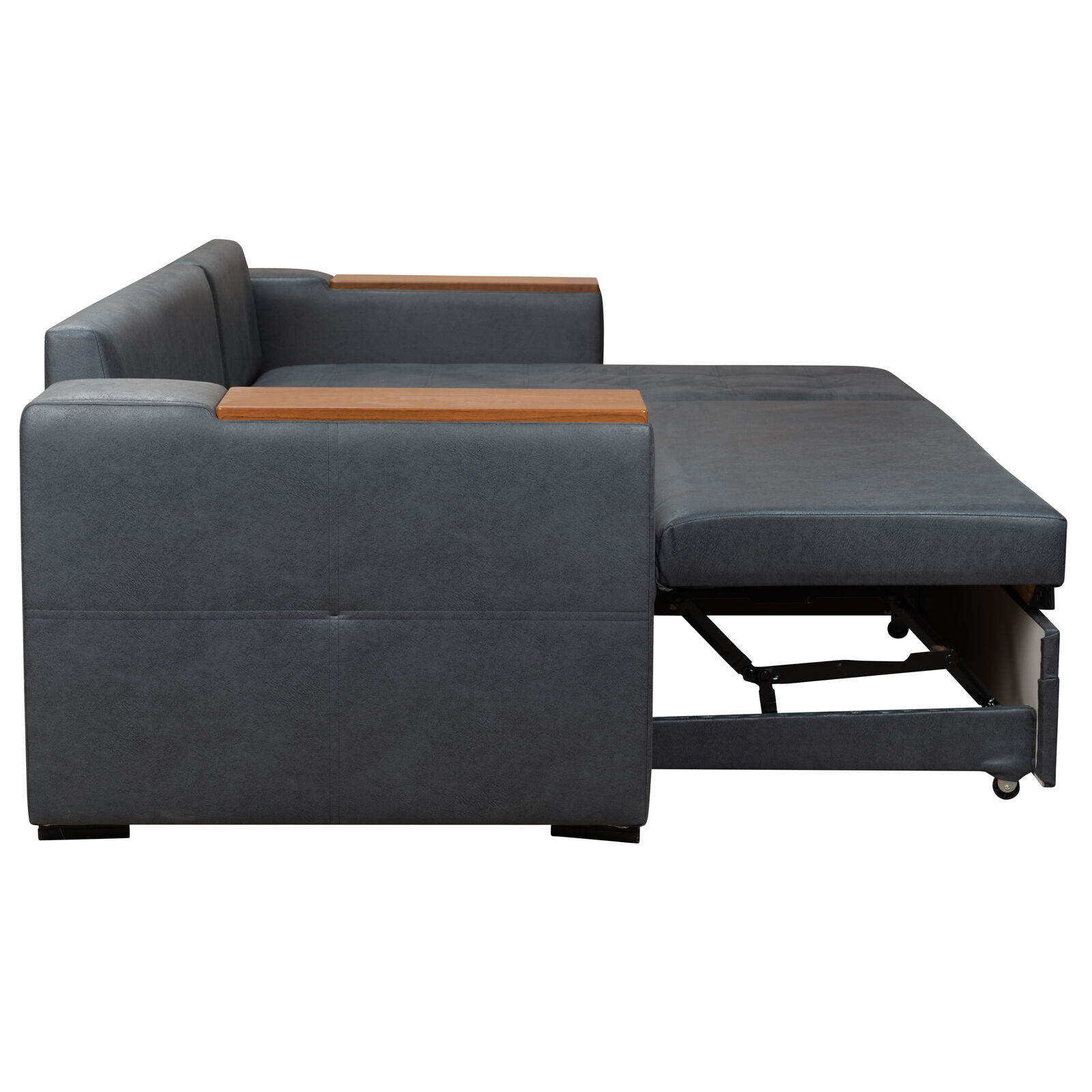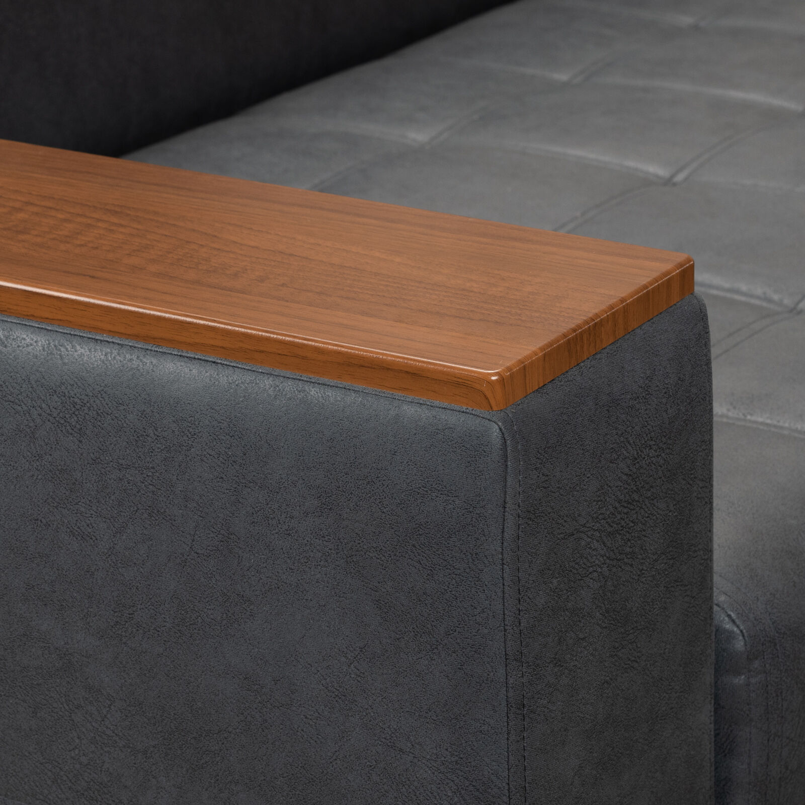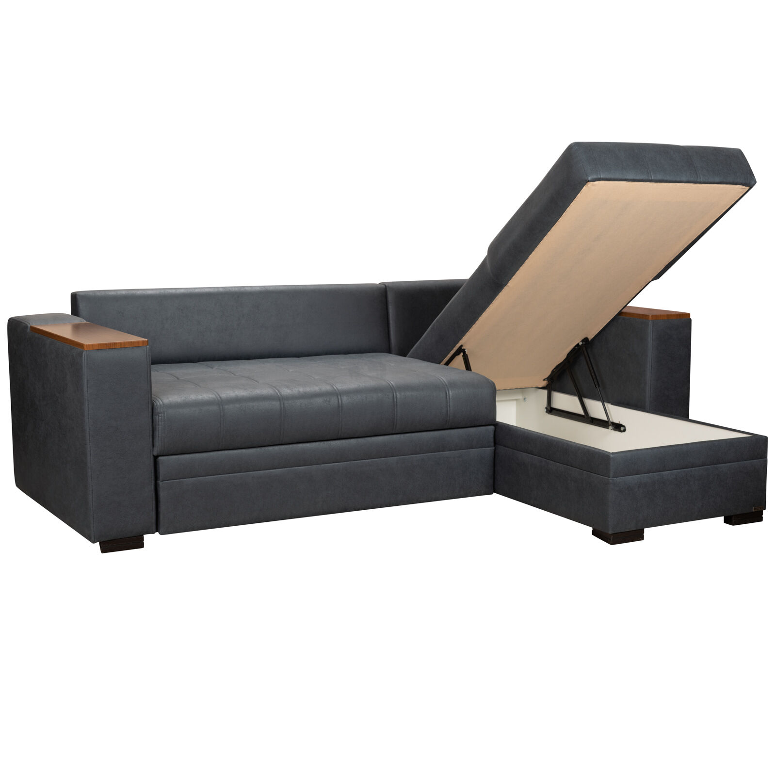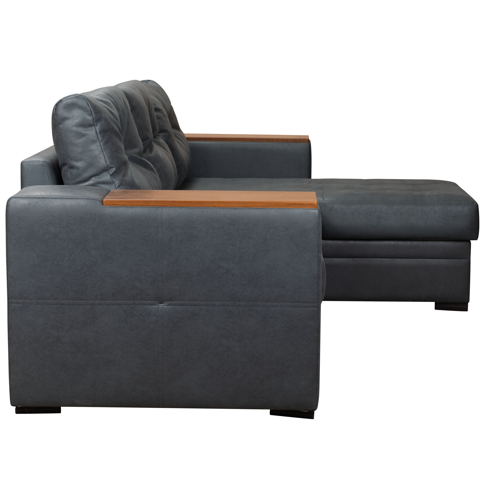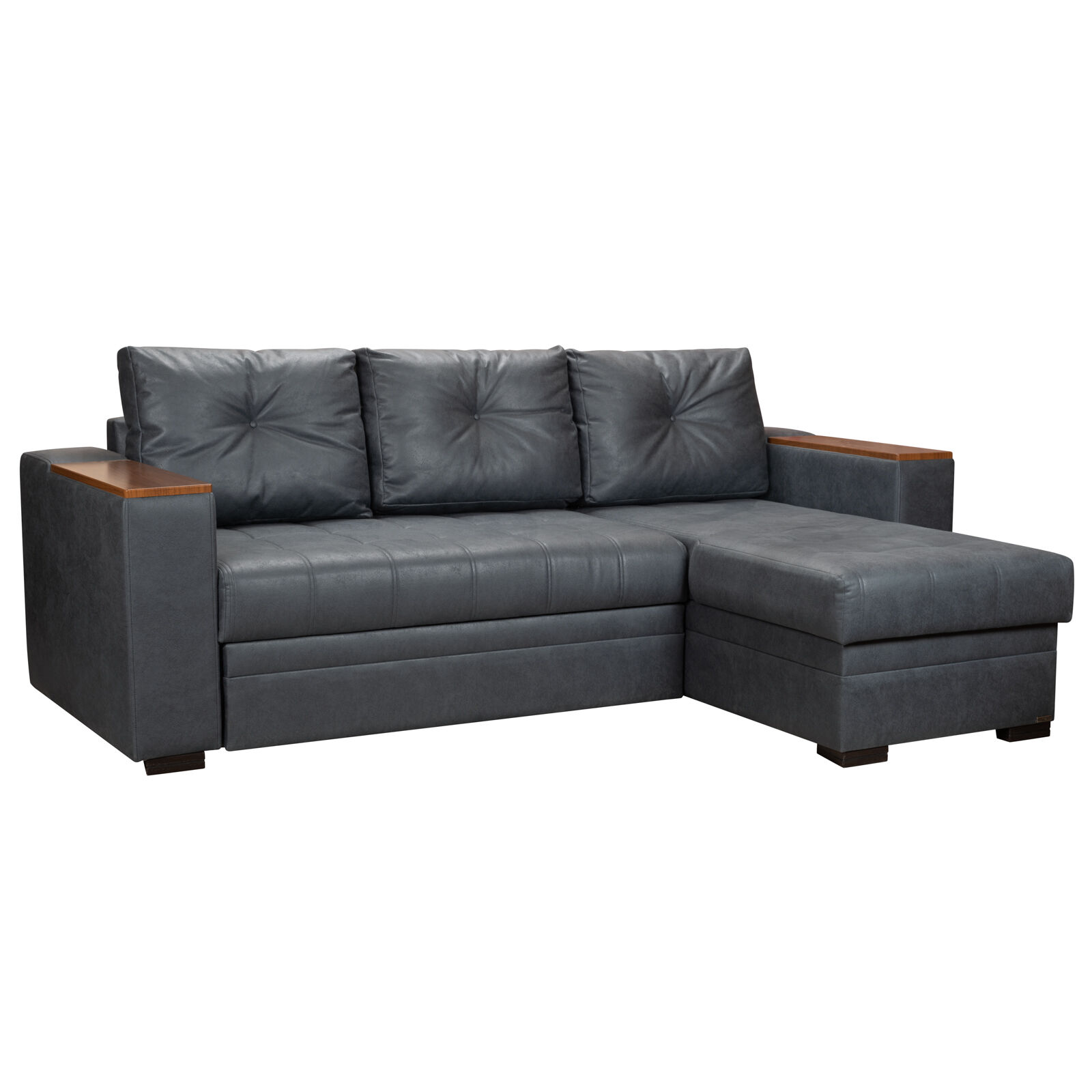 Диван кровать ELEGANT угловой ELGT-01 (S2886) является прекрасным украшением для любой гостиной, его современный и элегантный дизайн отлично впишется практически в любой интерьер. Боковые и нижние части выполнены из экокожи, сверху - ткань. Между кожей и тканью имеются оригинальные декоративные элементы из дерева. Подлокотники так же оснащены деревянными вставками. Диван оснащен ящиком для хранения, а также при необходимости может разбираться в комфортную двуспальную кровать. «Мебель поставляется в разобранном виде».