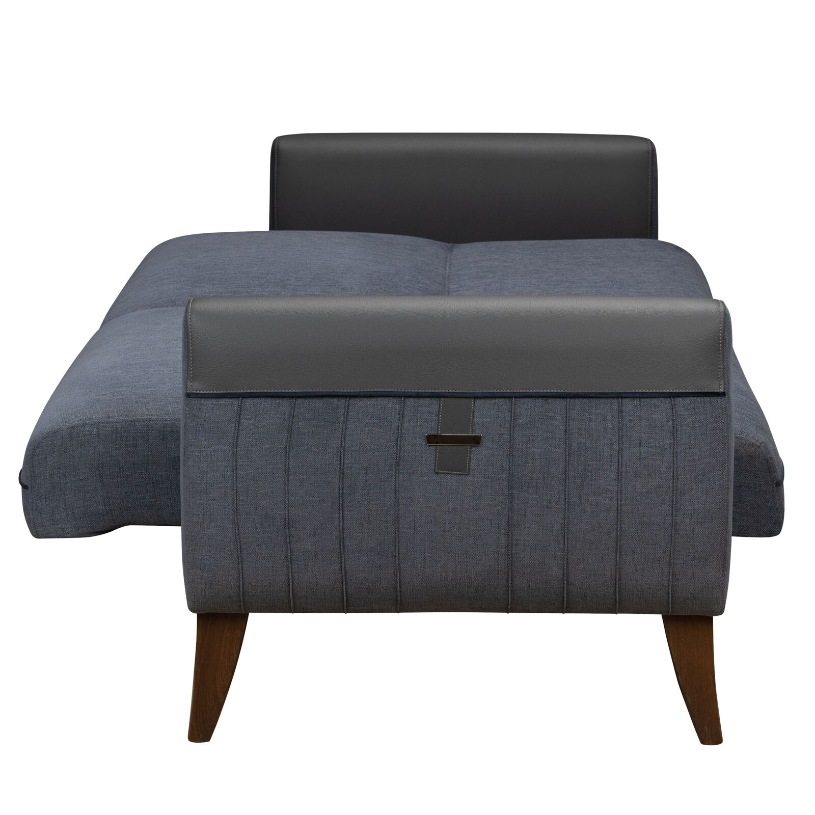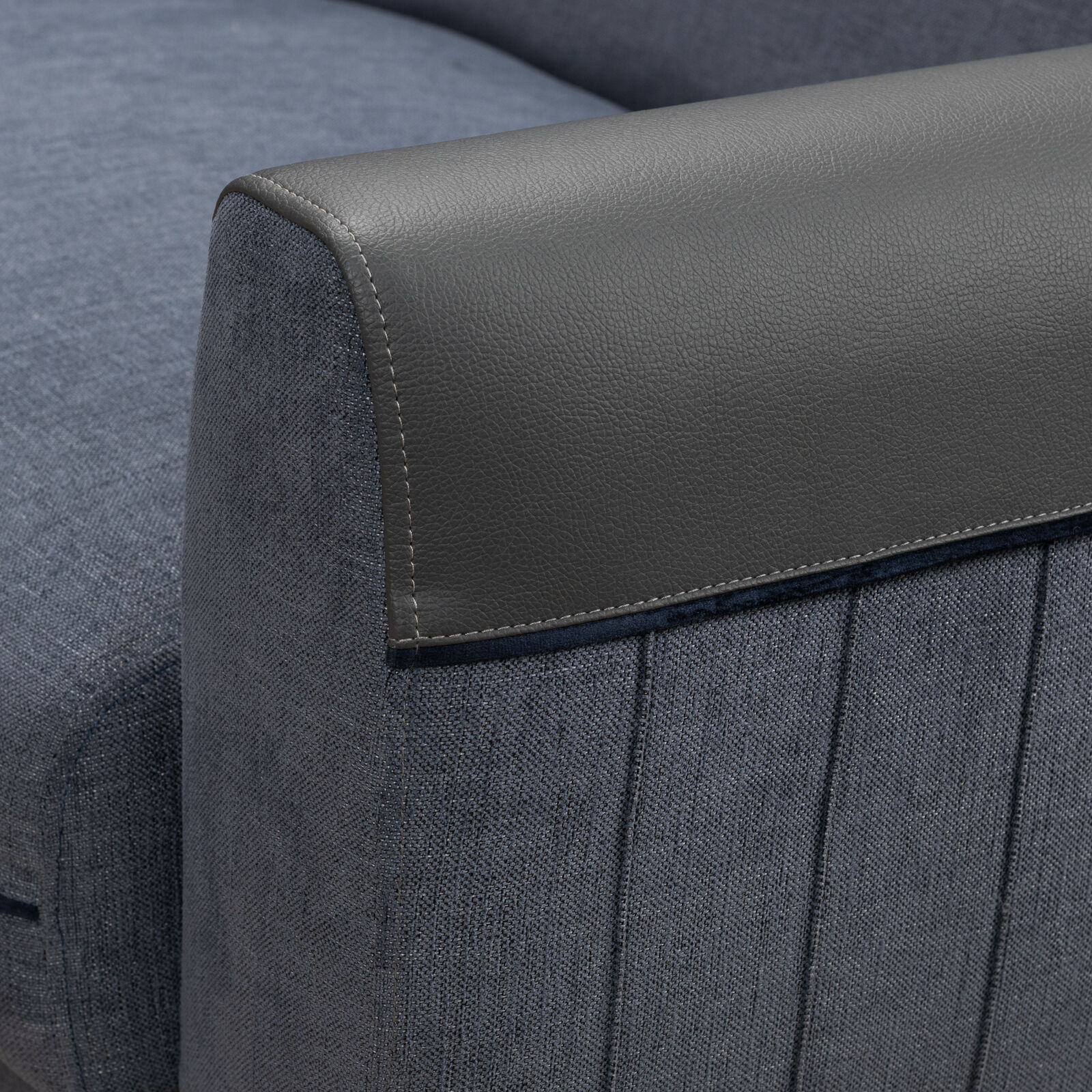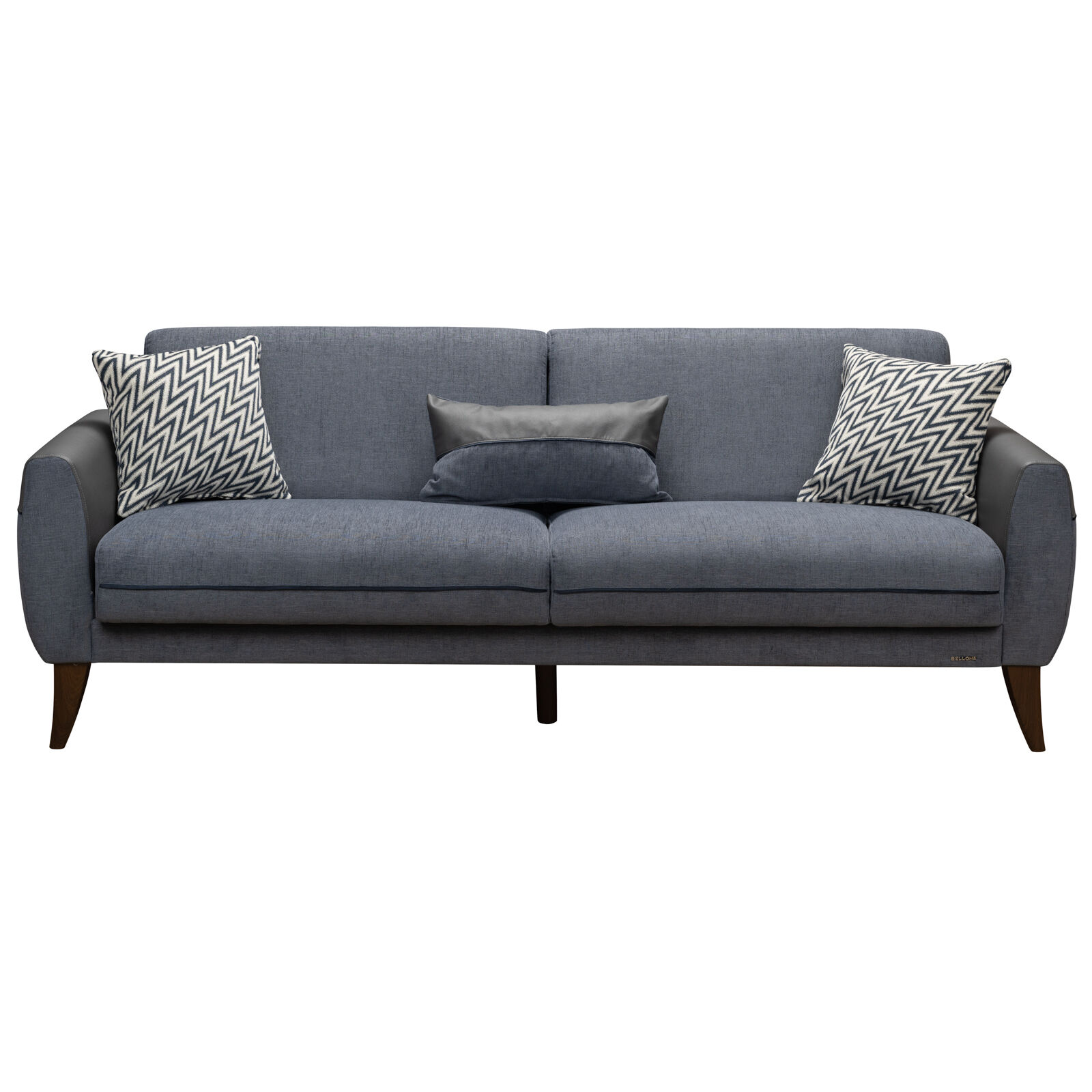 Современный раскладной диван кровать COZY 3-х местный темно-синий - выделяется среди остальных своей слабо выраженной дымчатой текстурой, нанесенной на невероятно мягкую ткань. Высокие ножки упростят Вам уборку в доме. Две квадратные подушки с узором и одна маленькая прямоугольная разделенная вдоль на две половины разными цветами, добавят респектабельного лоску интерьеру комнаты. Диван оснащен вместительным ящиком для хранения, был собран исключительно из безопасных для человека и окружающей среды материалов, а благодаря механизму Zero Wall он без труда может быть разложен в просторную кровать. «Мебель поставляется в разобранном виде».