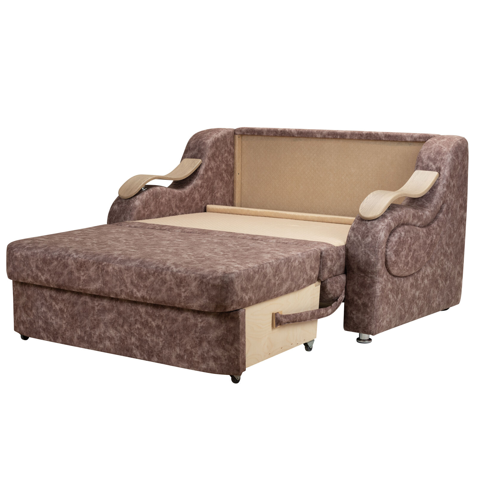 Диван кровать Казачок 120 подлокотник Линда 02 Spot (МБЛ) brown подходит для ежедневного применения в качестве индивидуального спального места. Выкаткой диван оснащен удобным механизмом складывания-раскладывания, благодаря этому свойству сборка дивана не займет много времени, сэкономит ваше время, силы. Просторный и глубокий бельевой ящик разрешит проблему хранения постельного белья. Спальное место изготовлено на основе конструкции «Боннель» способен выдержать самые серьезные нагрузки, обладая высокой плотностью и стойкостью.