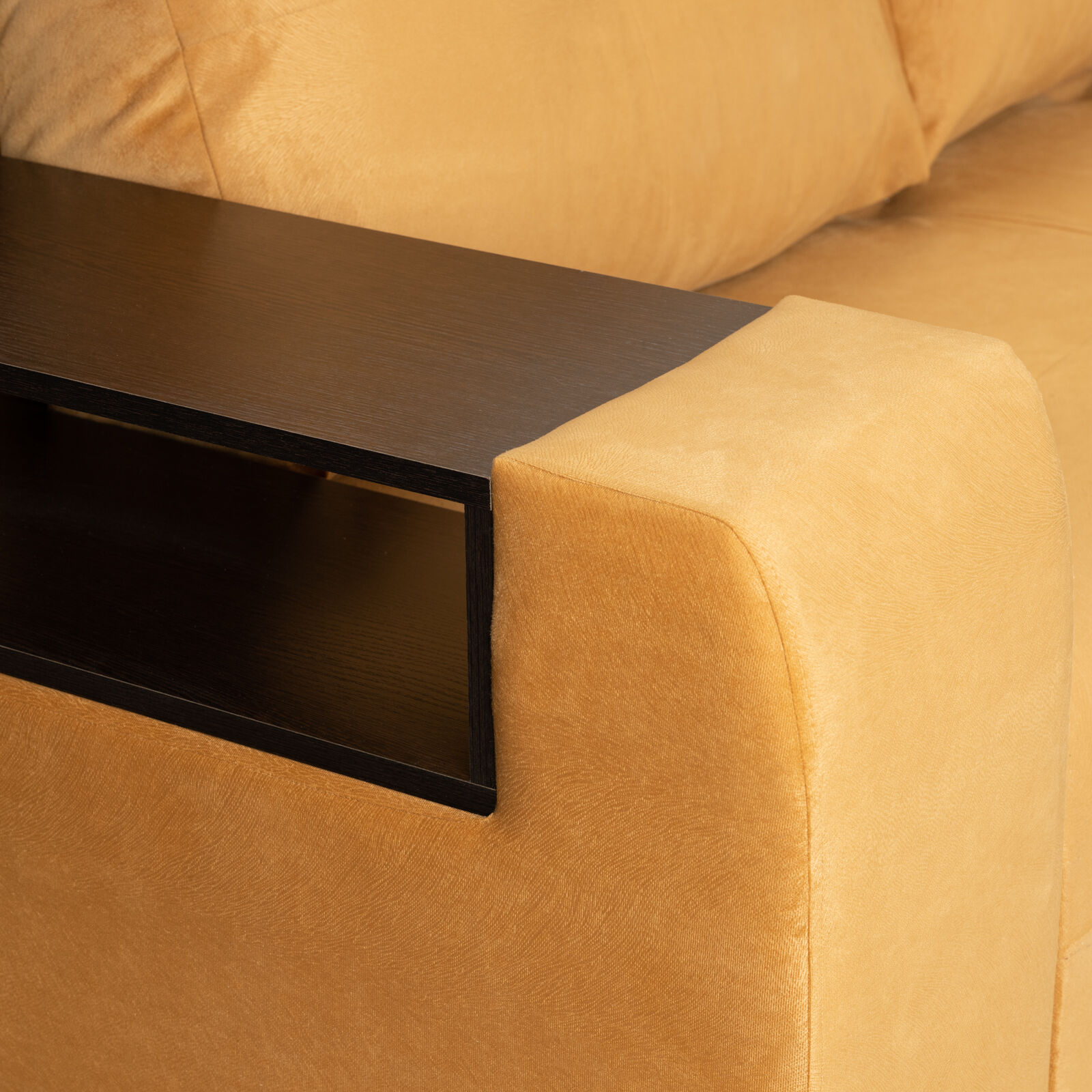Угловой диван - кровать «Сандра» изготовлен в классическом стиле. Каркас диванной части, спального места и сиденья оттоманки- металлический. Наполнитель: независимый пружинный блок. Чехлы сиденья и подушек съемные. Декор: массив. «Мебель поставляется в разобранном виде».