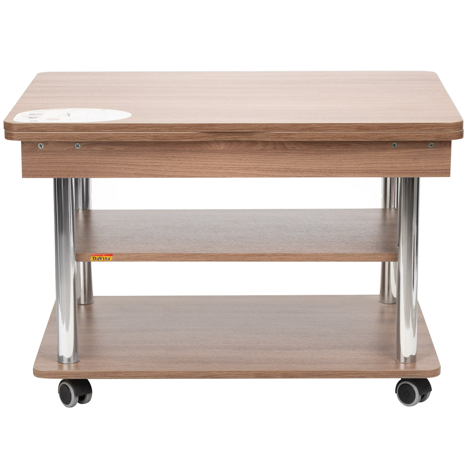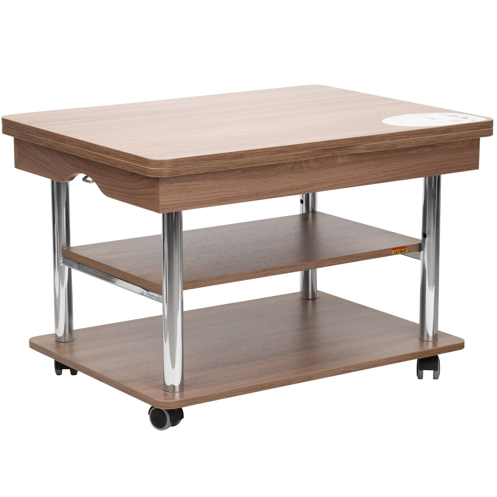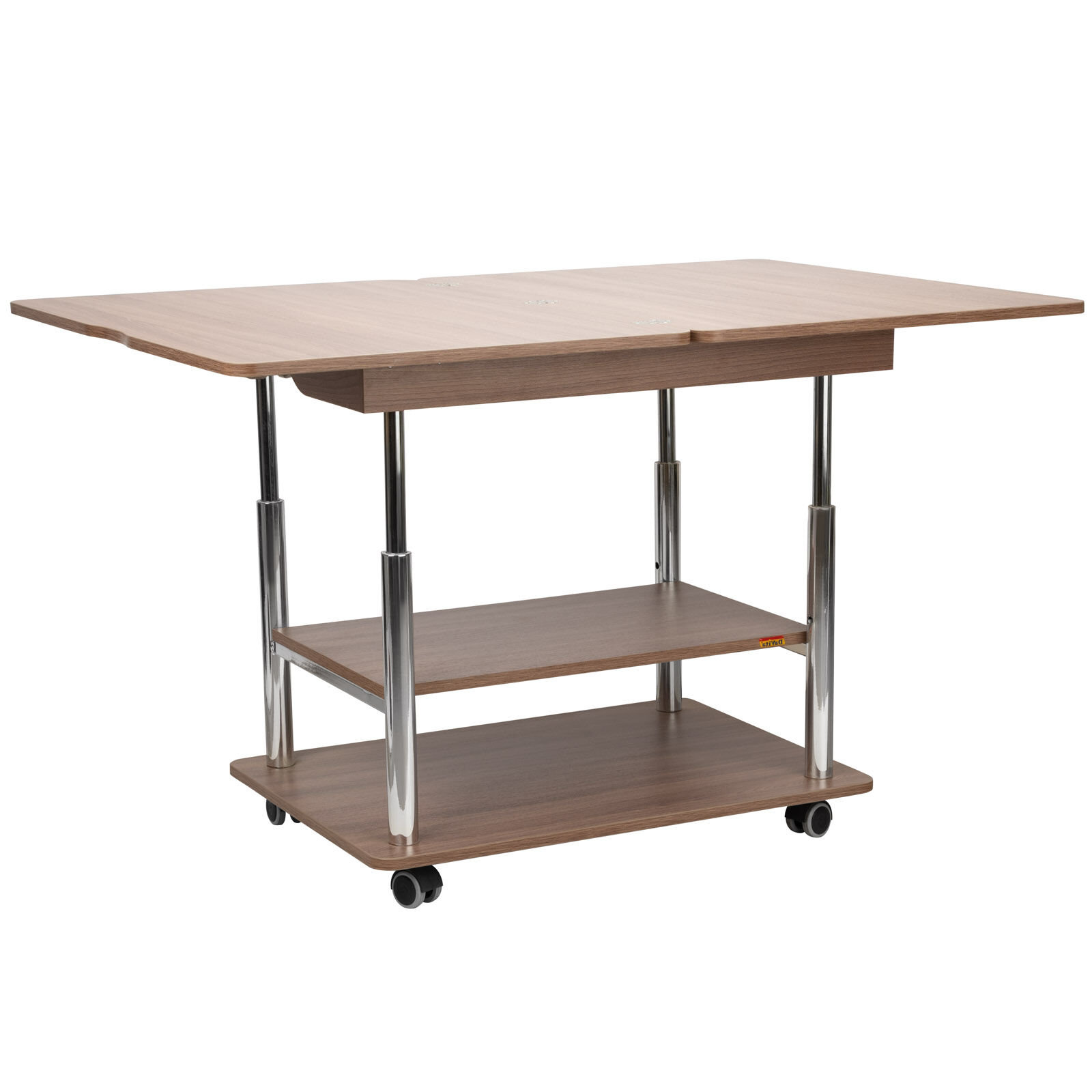 «Агат 22.2 ясень шимо» – особенная модель, которая сочетает в себе функции журнального и обеденного столов. Механизм подъема «Труба в трубе» позволяет увеличить высоту стола на 20 см, а механизм «Поворот и откидывание столешницы» увеличивает поверхность стола. Дополнительная полка для хранения журналов и мелочей добавляет изделию функциональность, а колесные опоры позволяют легко перемещать стол по комнате. «Мебель поставляется в разобранном виде».