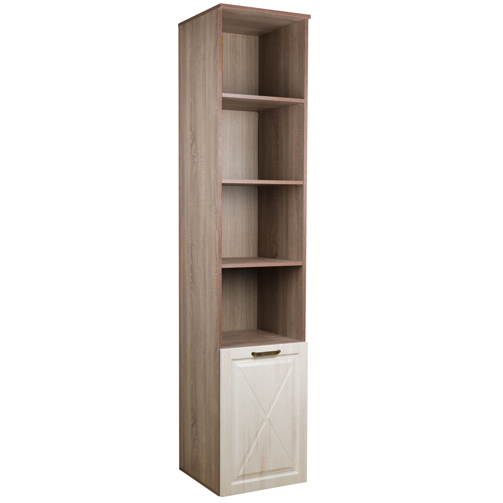Пенал Афина полуоткрытый (440) Винтаж Оксид-Кантри в стиле прованс выполнена в светлом декоре «Кантри». Этот теплый и мягкий оттенок наполняет пространство уютом, а контрастный дуб винтаж с насыщенной древесной структурой придает коллекции особый шарм. «Мебель поставляется в разобранном виде».