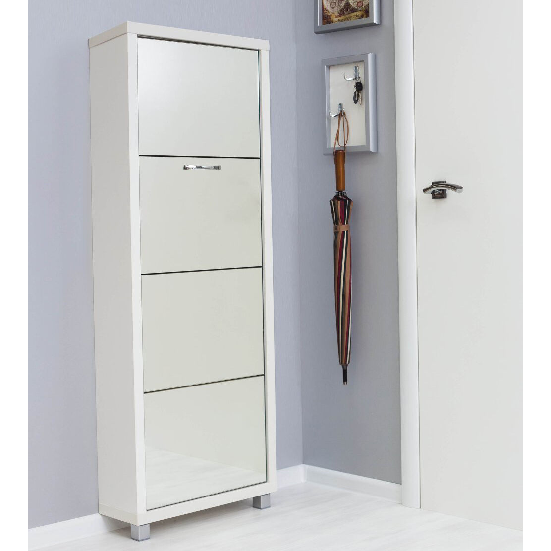Обувной шкаф «Айрон Люкс 4 белый шагрень-зеркало» представляет собой весьма вместительную и многофункциональную мебель. Она сочетает все необходимые функции, которые позволяют удобно и аккуратно хранить и размещать около 8 пар обуви одновременно. Для надежности можно закрепить обувницу к стене через специальные технологические отверстия. Система лотков: оцинкованный лист с полимерным покрытием.