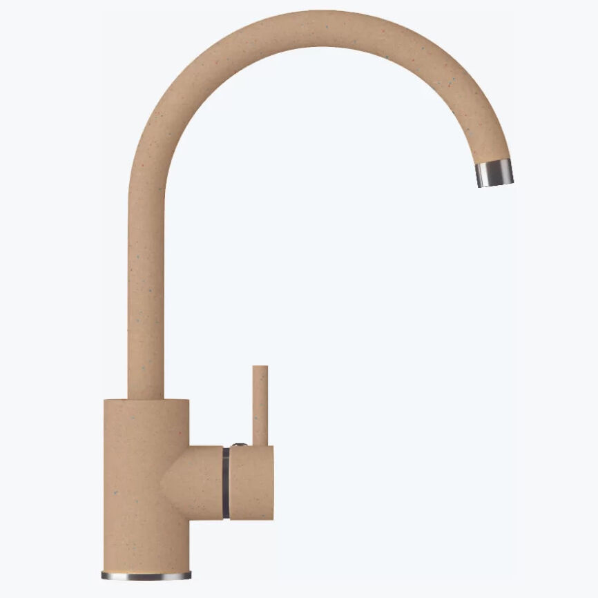 Смеситель Элара №27 бежевый совершенно логичное дополнение к оригинальной мойке из камня или кварца. Оригинальная поверхность делает уход за смесителями очень простым – на ней не видно следов потеков, а благодаря особенным составами она обладает антибактериальными свойствами. Смеситель «Элара» прослужит вам много лет, сэкономив немало средств на ремонте и замене.