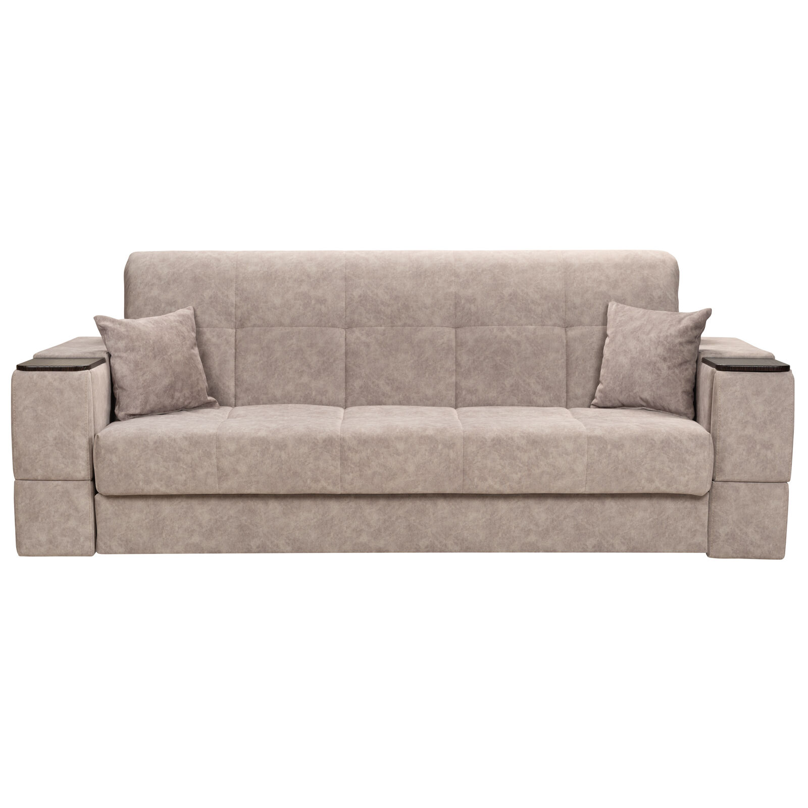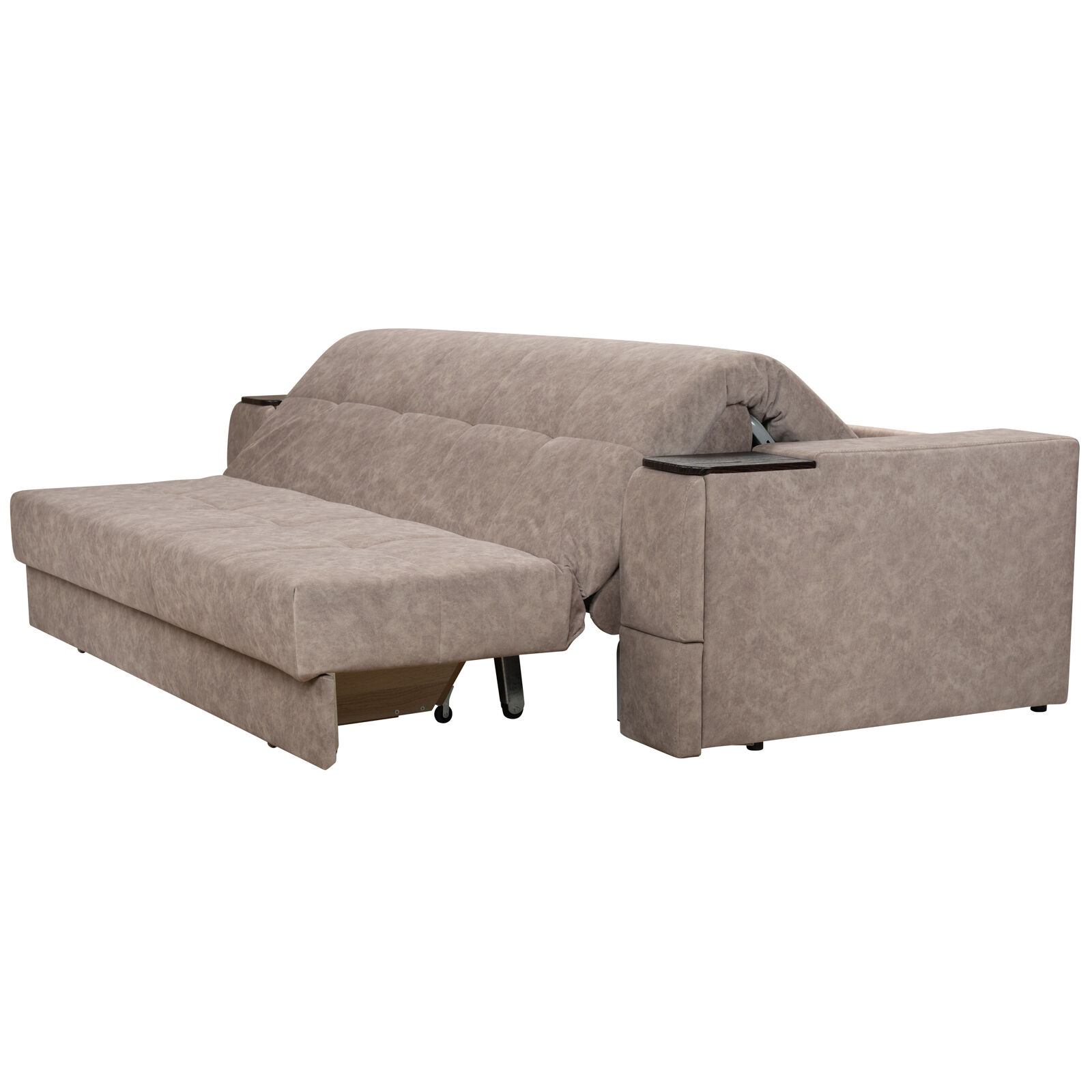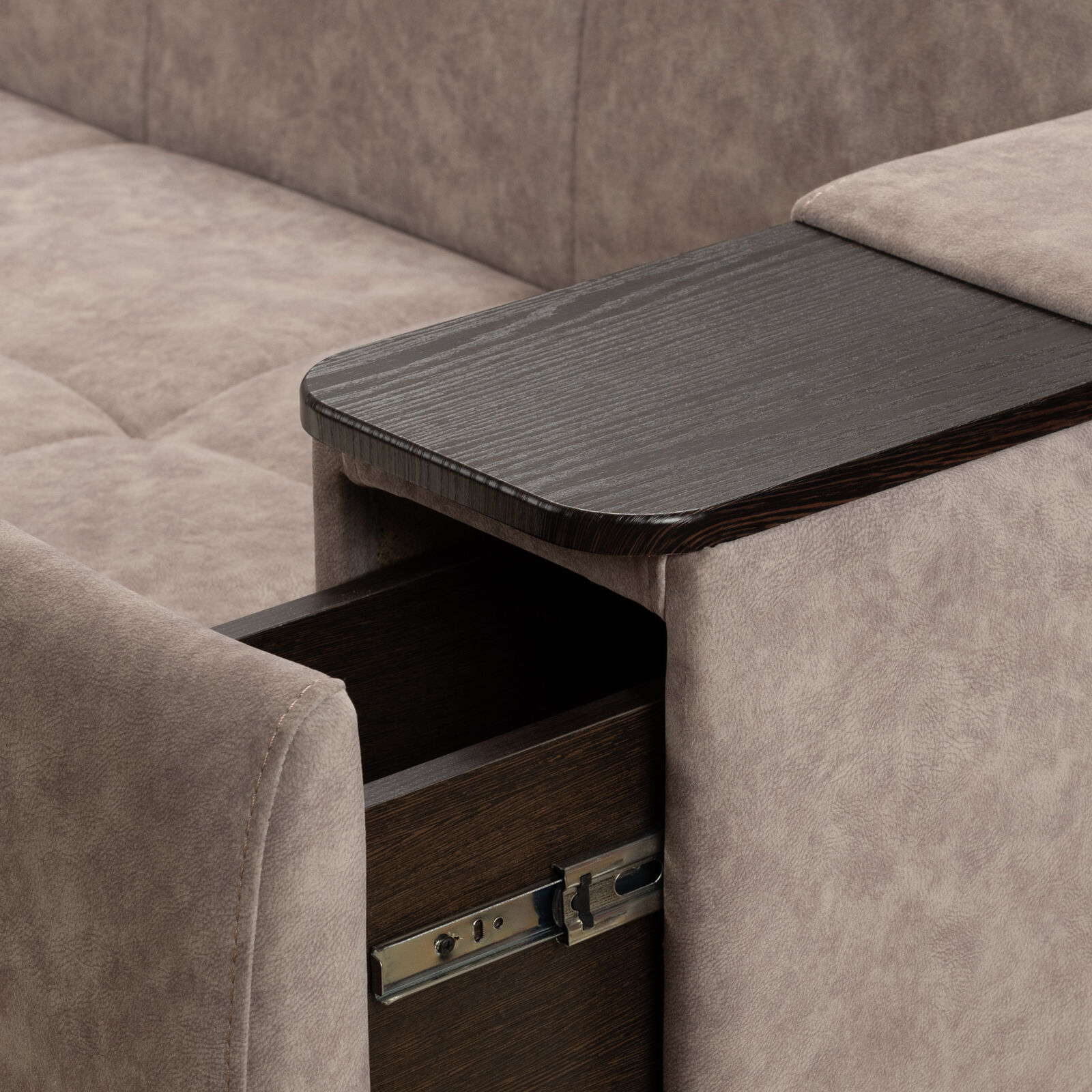 Диван «Токио 4 №190 ППУ Nappa 03 Сонома» оснащен выдвижным столиком из подлокотника, что позволяет комфортно отдохнуть после рабочего дня. Другой подлокотник оборудован выдвижными ящиками для хранения различных вещей. Такая мебель значительно экономит пространство в помещении и несомненно делает отдых на диване комфортнее, ведь буквально под рукой есть стол, на который можно поставить бокал, положить книгу или журнал. «Мебель поставляется в разобранном виде».