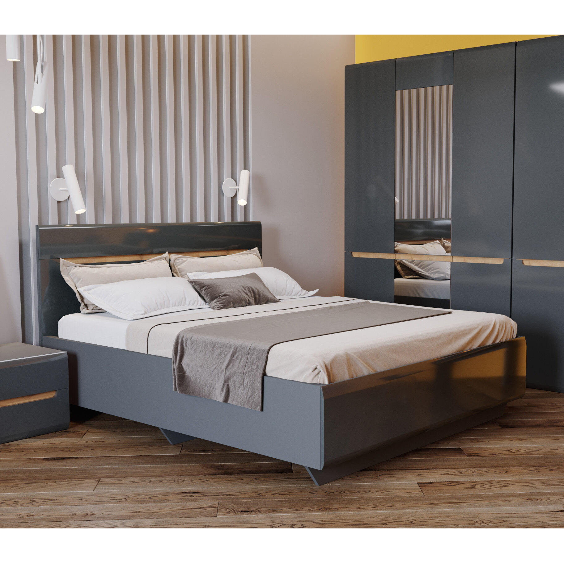 Кровать Стокгольм 160 с настилом Серый Графит-Графит Глянец. заслужила свою популярность благодаря современному дизайну, качественной фурнитуре, закругленным формам и гармоничному сочетанию цветов. «Мебель поставляется в разобранном виде». «Матрас в комплект не входит».