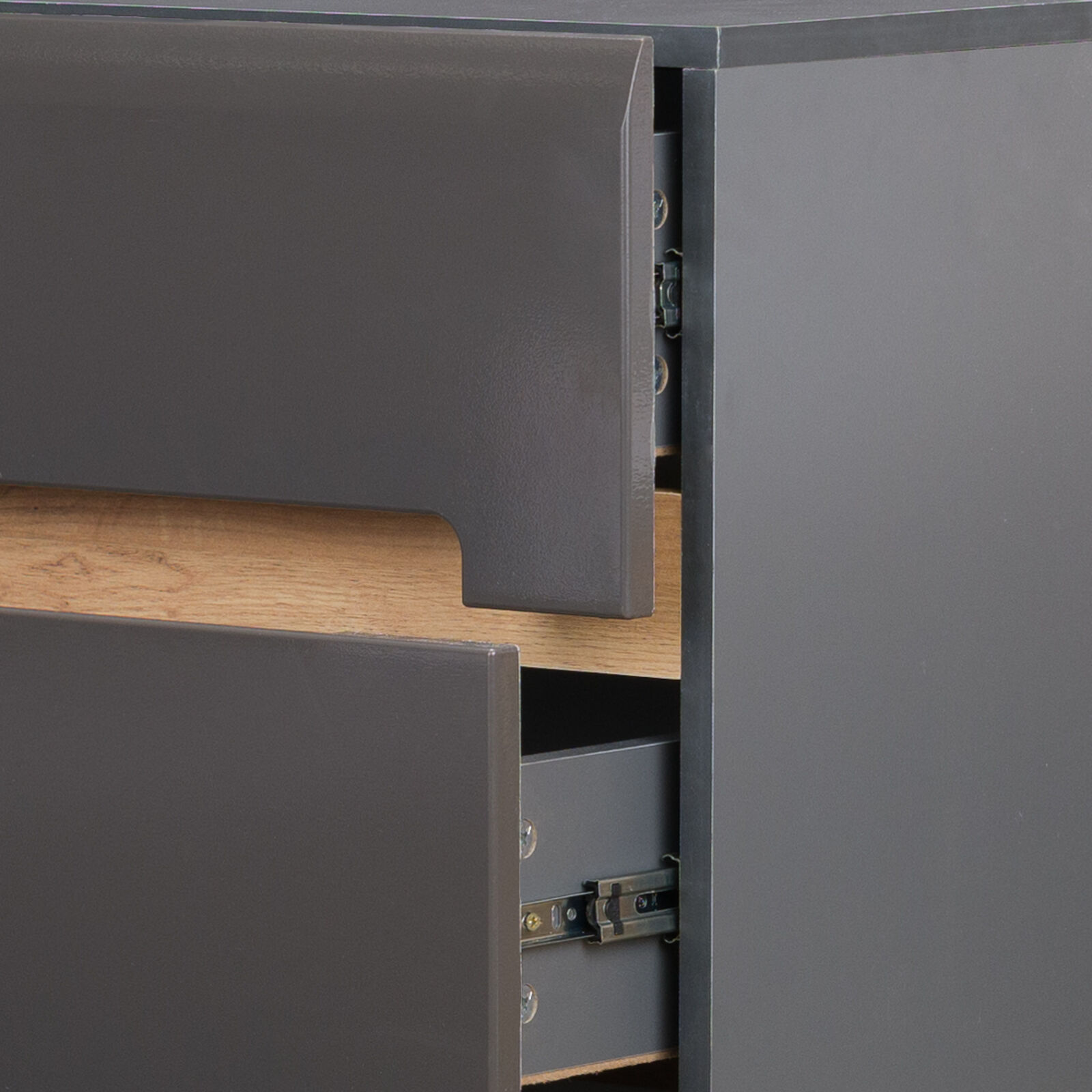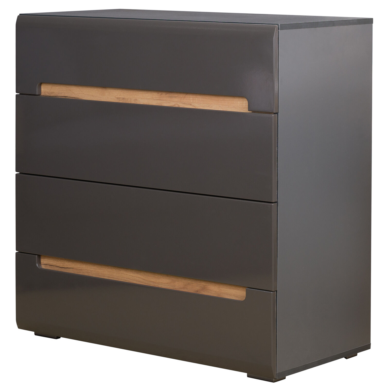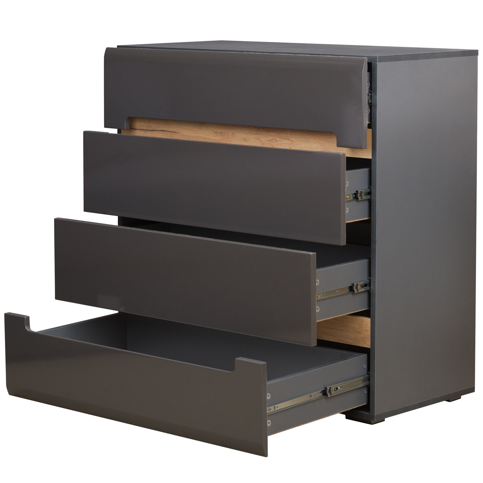 Комод Стокгольм Серый Графит-Графит Глянец. Красивый и вместительный, отлично впишется в любой интерьер. Благодаря лаконичности дизайна его можно использовать для оформления любых жилых помещений, что дает возможность разместить с удобством множество домашних вещей, не занимая при этом полезную площадь комнаты.. «Мебель поставляется в разобранном виде».