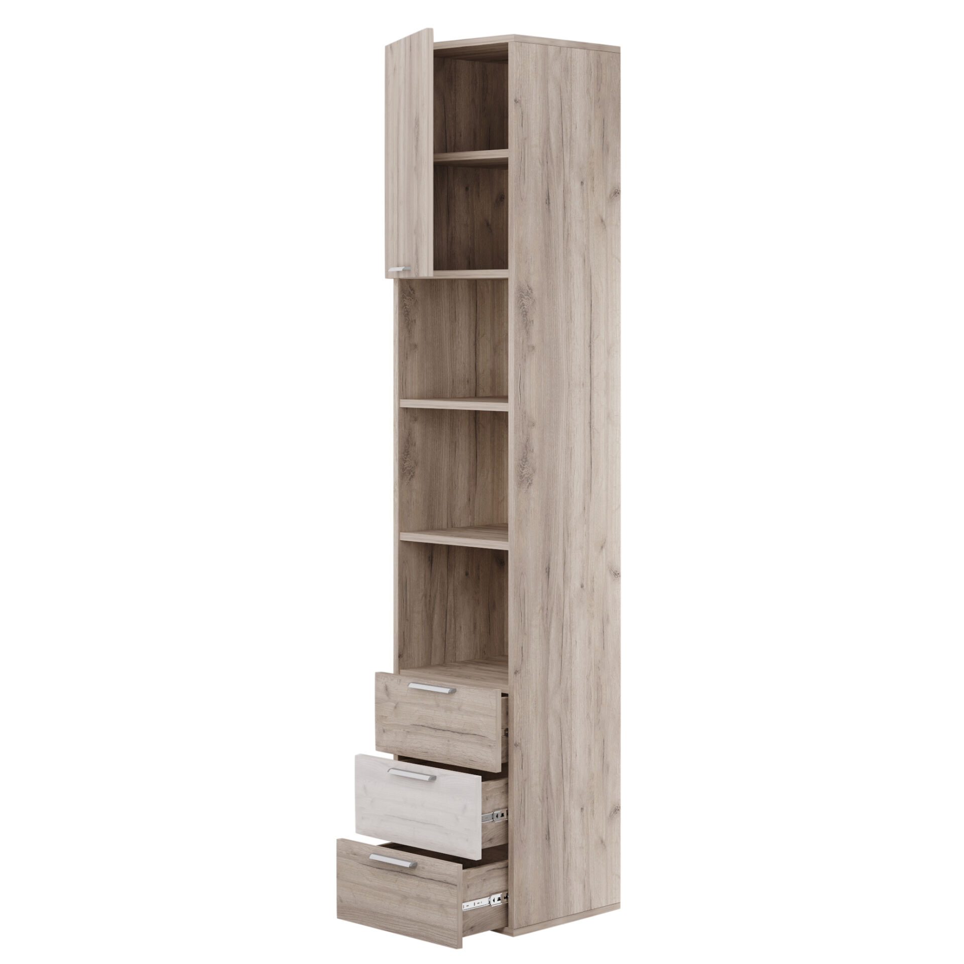 Пенал полуоткрытый 440 Лацио Дуб Серый Крафт-Дуб Белый Крафт. Натуральный оттенок дуба белого крафта визуально расширяет пространство, создавая ощущение воздушности, а серый крафт – добавляет ощущение домашнего уюта. «Мебель поставляется в разобранном виде».