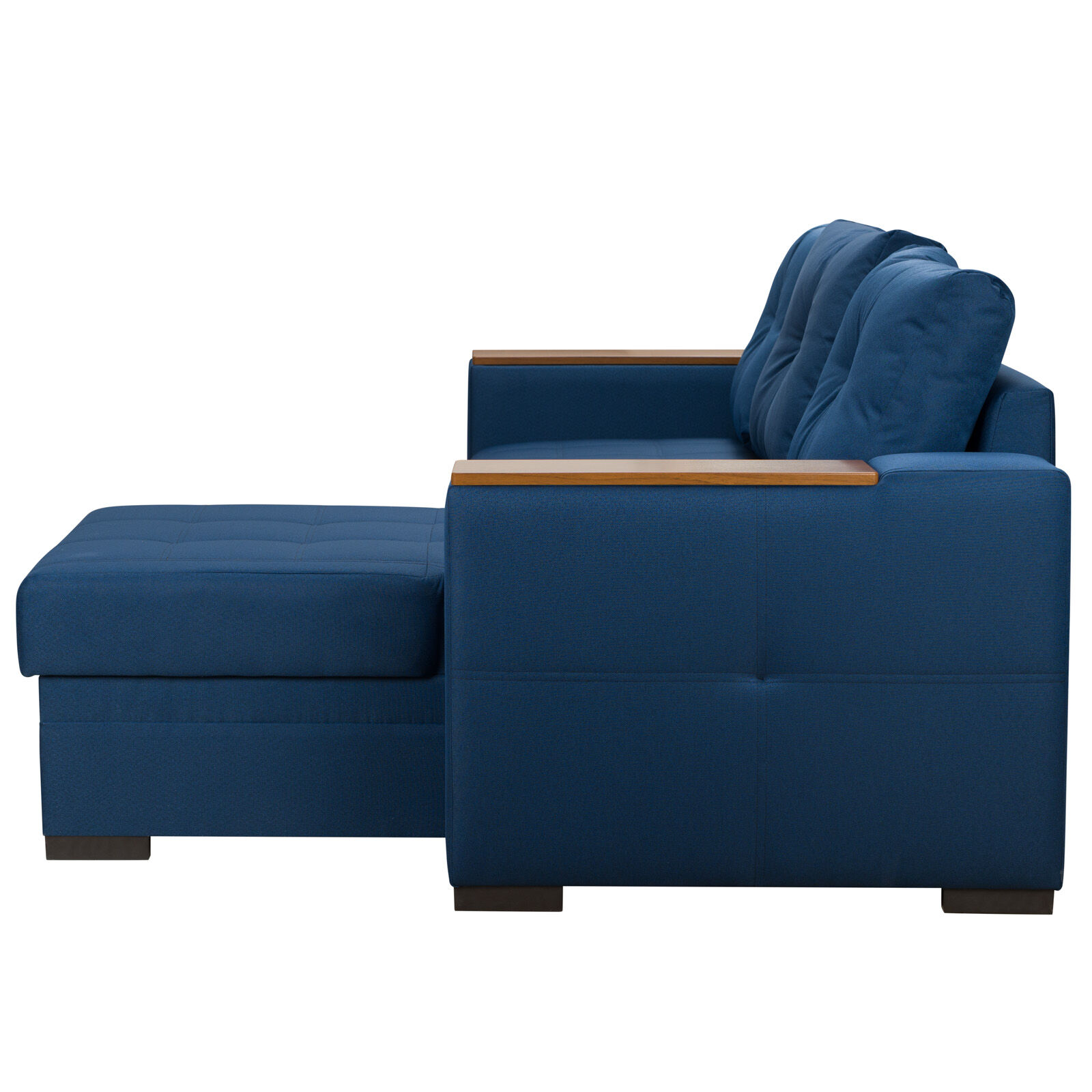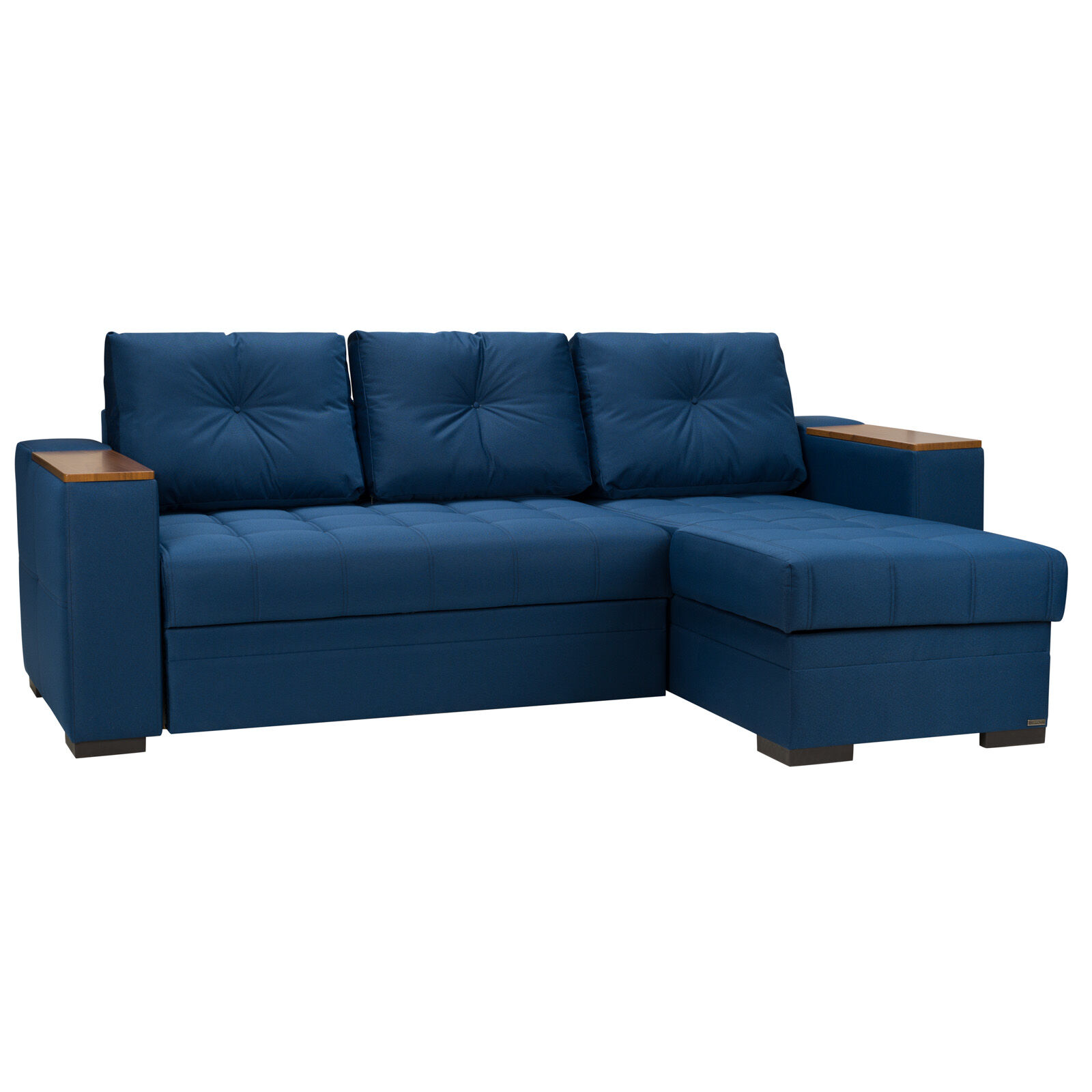 Угловой диван «ELEGANT ELGT-01 (N1583)» является прекрасным украшением для любой гостиной, его современный и элегантный дизайн отлично впишется практически в любой интерьер. Боковые и нижние части выполнены из экокожи, сверху - ткань. Между кожей и тканью имеются оригинальные декоративные элементы из дерева. Подлокотники так же оснащены деревянными вставками. Диван оснащен ящиком для хранения, а также при необходимости может разбираться в комфортную двуспальную кровать. «Мебель поставляется в разобранном виде».