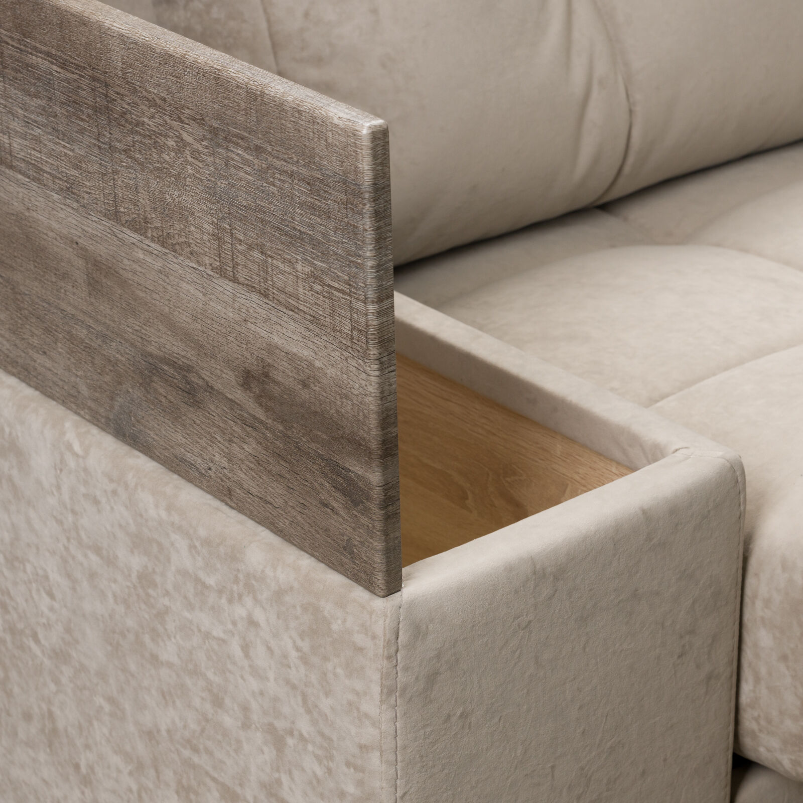 Диван Дакар 10 1/2 БД Боннель LAMBI 03 Дуб дымчатый - используется улучшенная модификация механизма «выкатная книжка» с роликами на выдвигаемой части, облегчающими процесс раскладывания и двумя положениями фиксации спинки. Специальная простежка чехла не позволяет дивану утратить свою форму в процессе эксплуатации. «Мебель поставляется в разобранном виде».