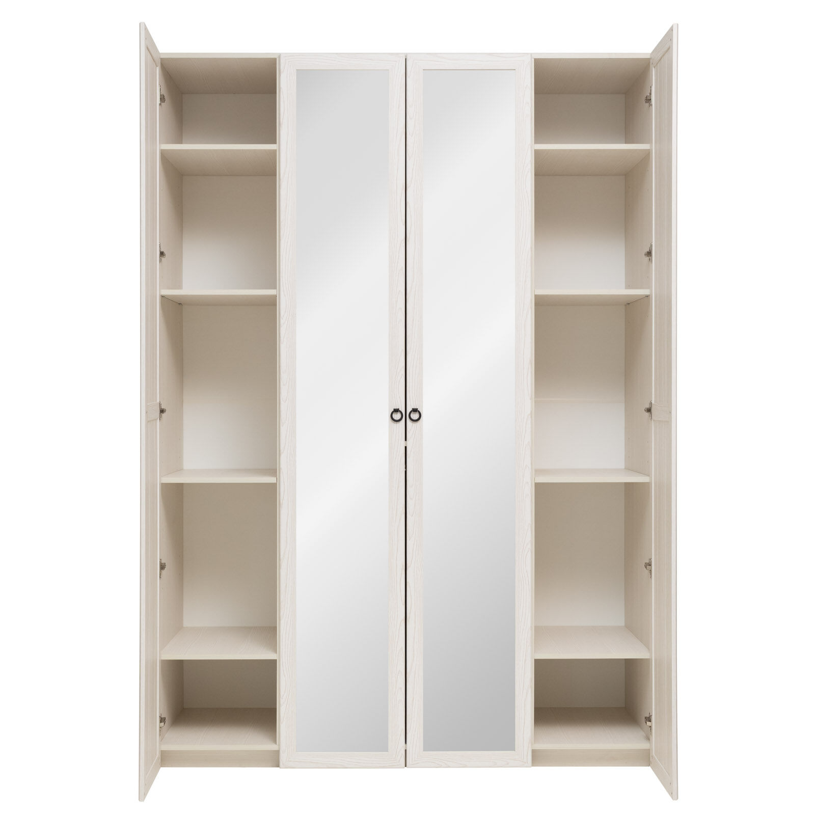 Вместительный четырехдверный шкаф для одежды и белья с зеркалами во весь рост – находка для любой спальни. Глухие фасады открываются за ручки-кольца.Продуманное наполнение шкафа позволит зонировать хранение вещей для каждого члена семьи. «Мебель поставляется в разобранном виде».