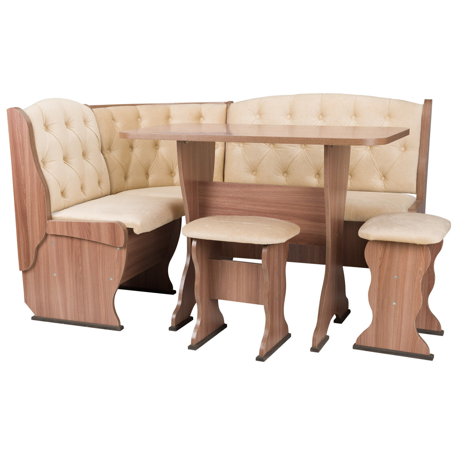 Состав набора: Кухонный уголок, стол и 2 табурета.Под сиденьями находятся ящики для хранения.Угол собирается как в правом,так и в левом исполнении. ШхГхВ 1500 x1100 х850