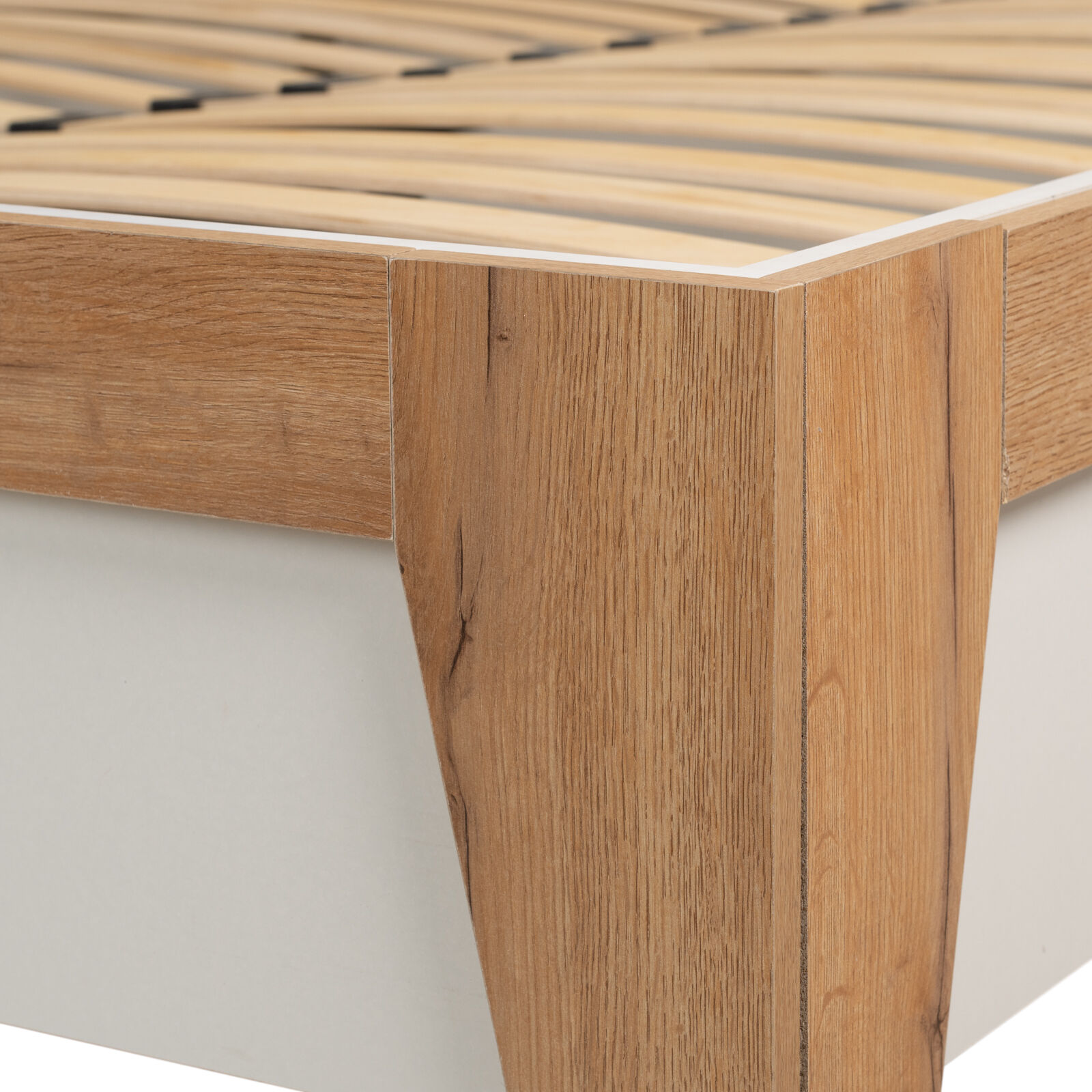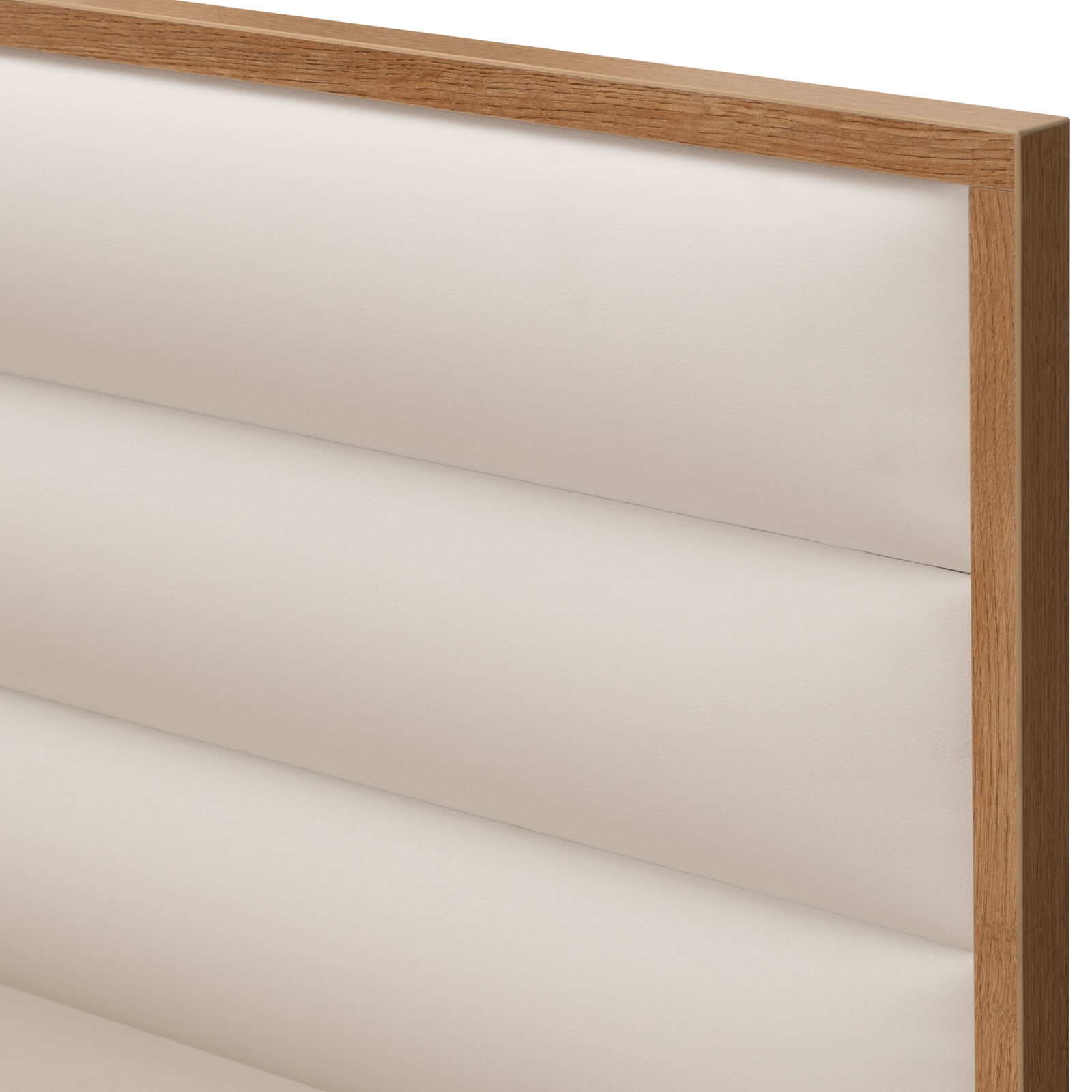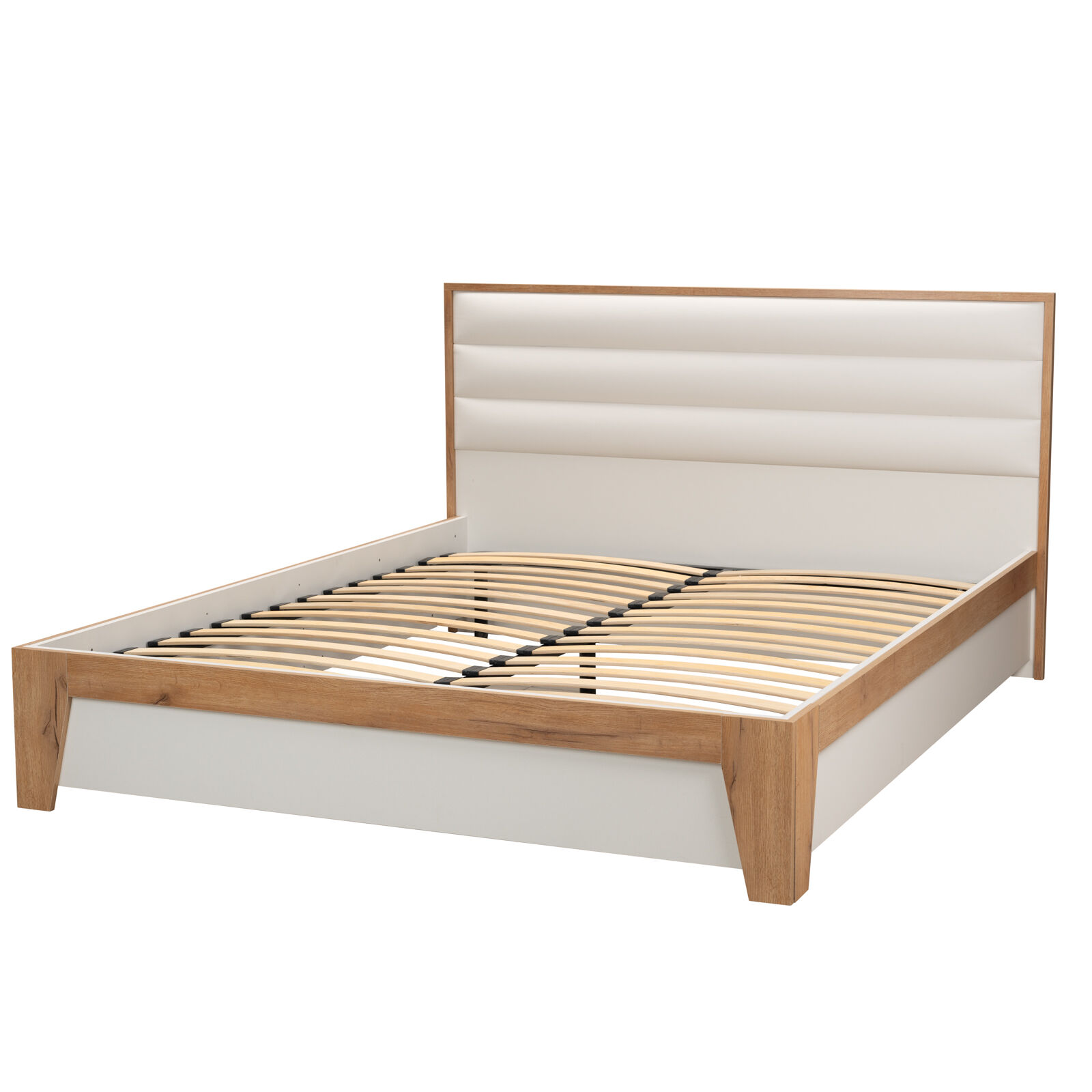 Кровать АЙРИС подчеркивают опоры и массивная рама, обрамляющая мягкое изголовье. Подушечки мягкой спинки укутаны в белую экокожу, которая приятна на ощупь и легко очищается от загрязнений. Двуспальная кровать с лаконичным дизайном и простыми геометрическими формами гармонично дополните современную спальню. «Мебель поставляется в разобранном виде». «Матрас в комплект не входит».