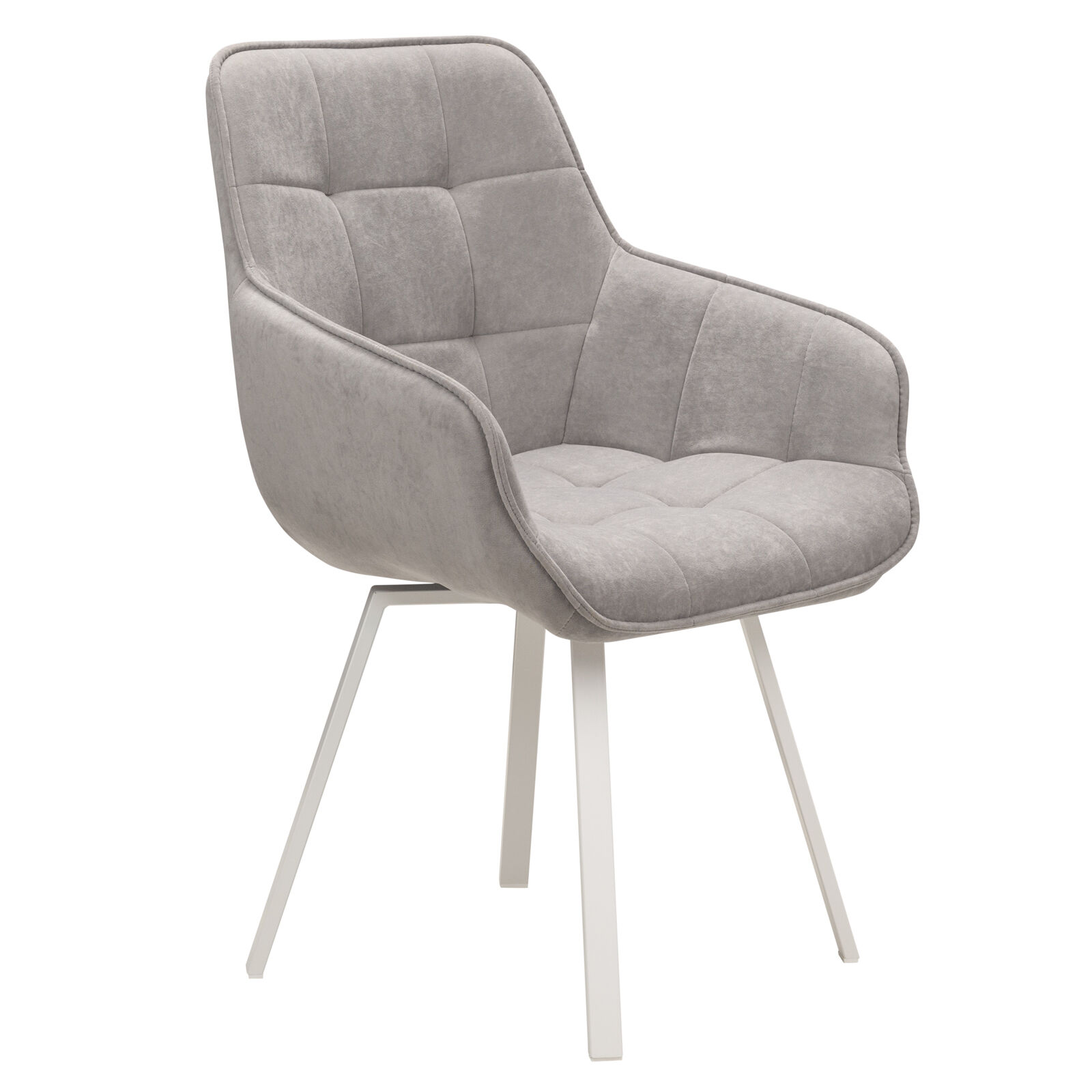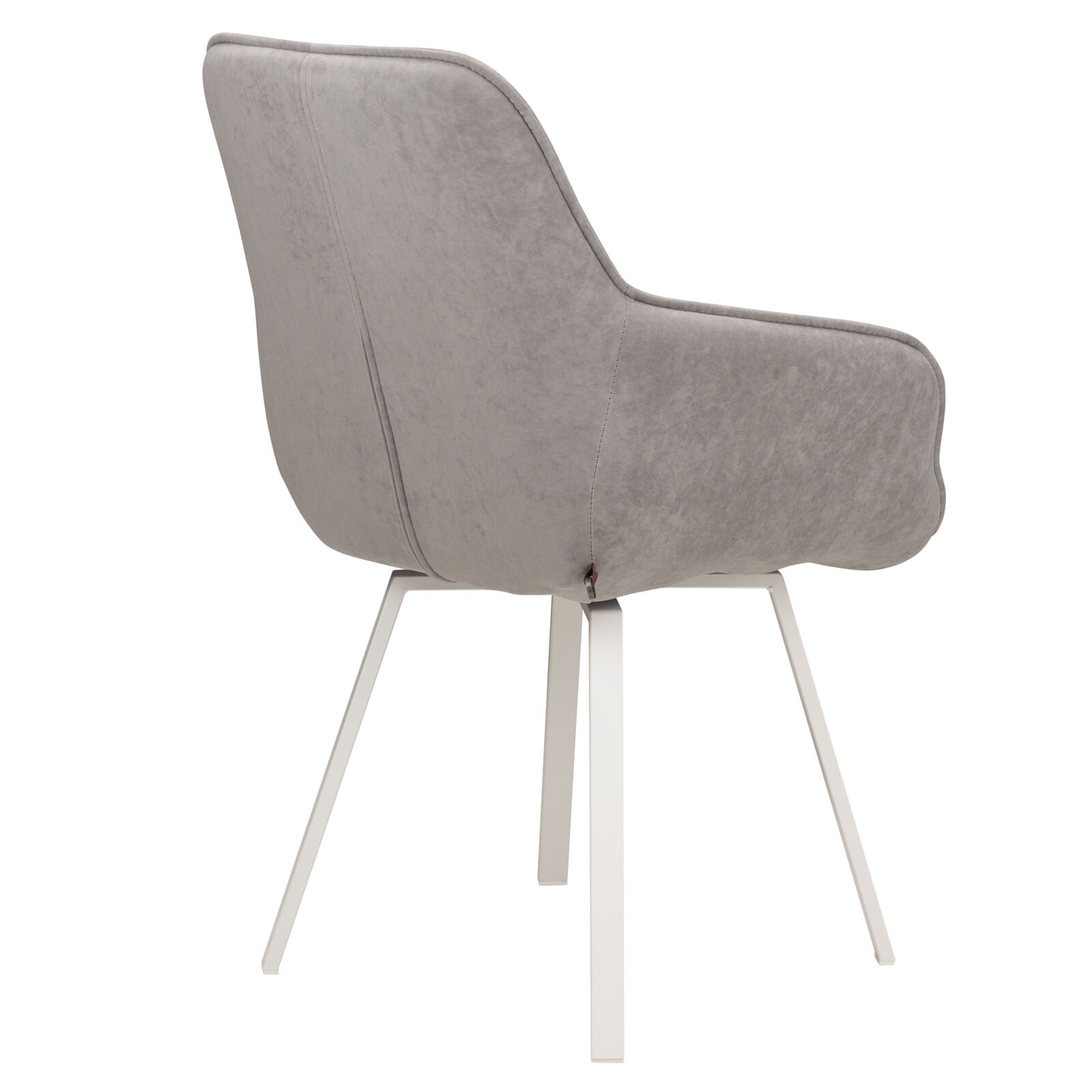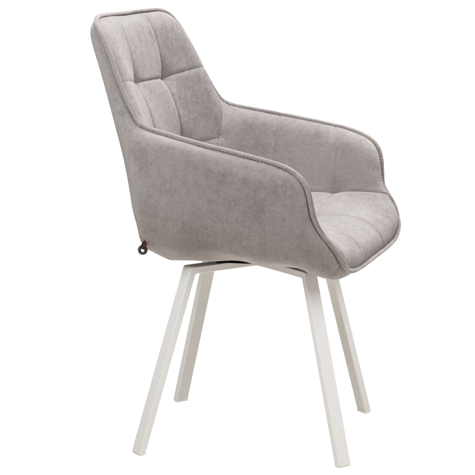 Стул «ROMEO с поворотным механизмом Белый Grey LUX b22» с подлокотниками подходит для гостиной или кухни в стиле лофт, индастриал, сочетается с деревянными и керамическими столами на металлических опорах. Спинка и сиденье модели декорированы квадратной строчкой. Крестообразная рама с болтовым креплением элементов отвечает за прочность модели. Сплошная спинка, мягкое квадратное сиденье и подлокотники дают максимальный комфорт при отдыхе. Специальный механизм обеспечивает поворот кресла.