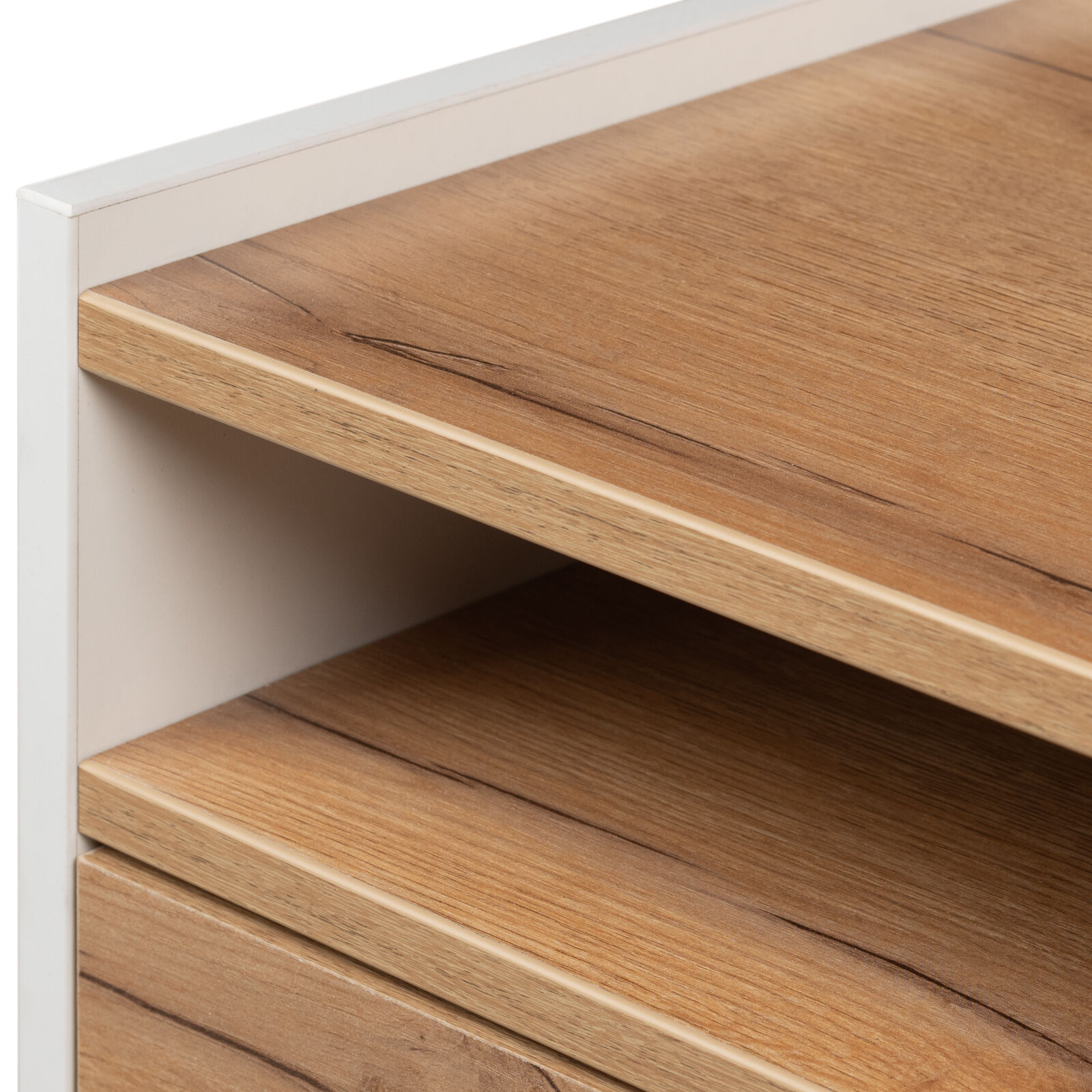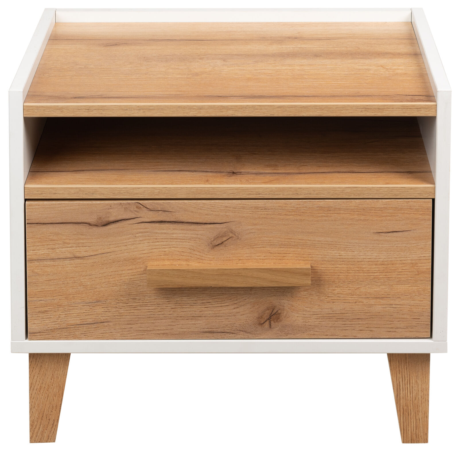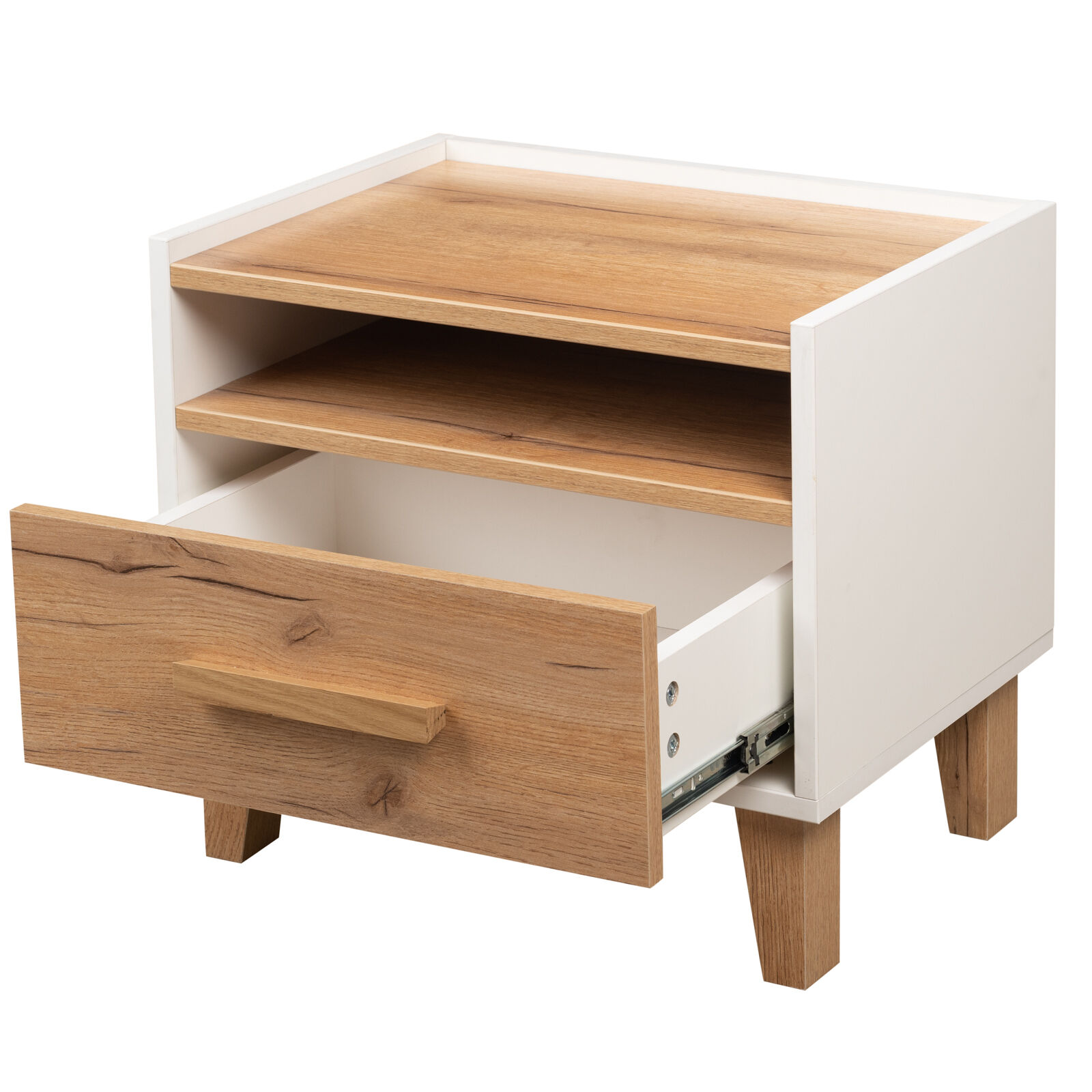 Тумба прикроватная «АЙРИС 41 Белый Дуб золотистый (спальня)» для спальни на высоких опорах - это практичное место для хранения мелочей, необходимых перед сном. «Мебель поставляется в разобранном виде».
