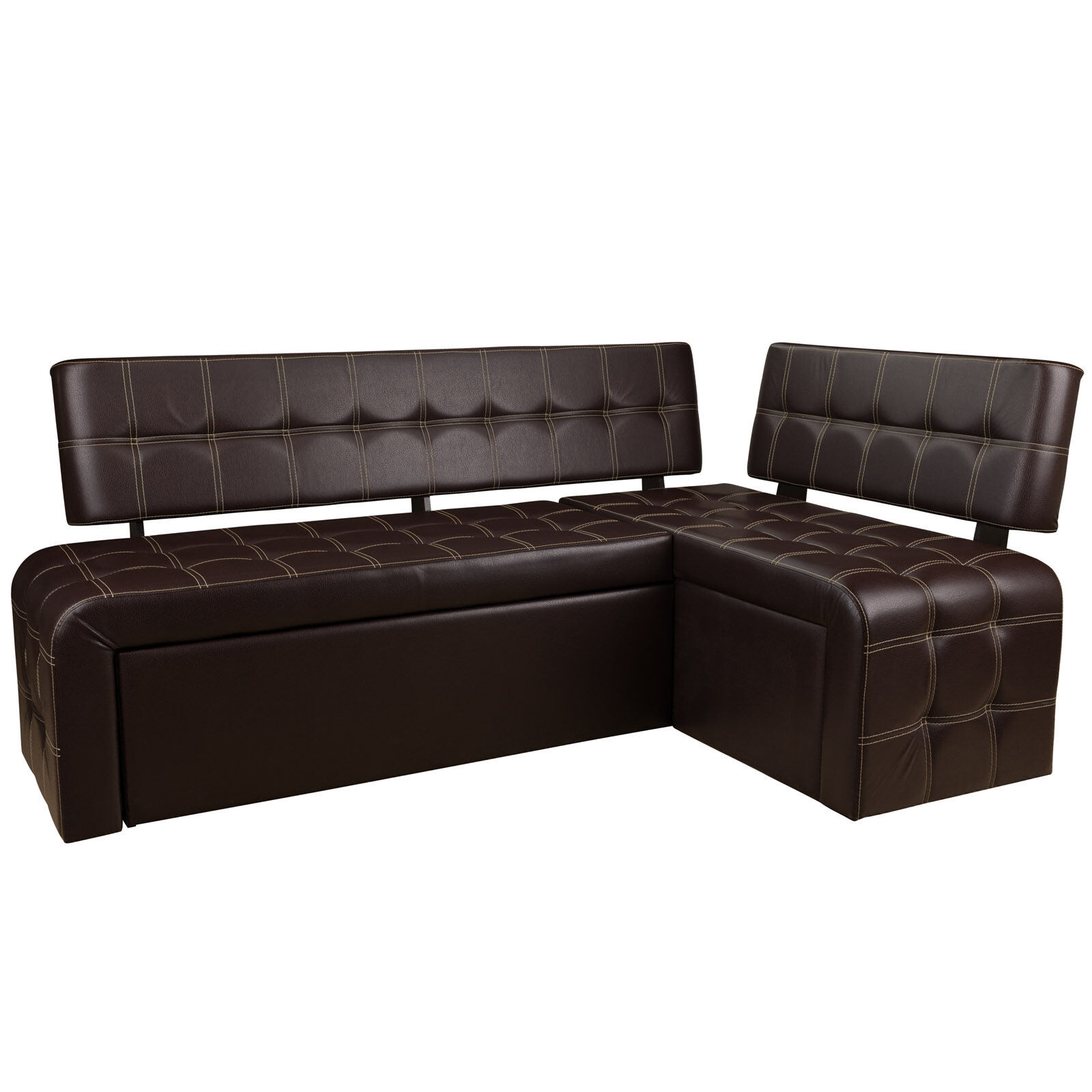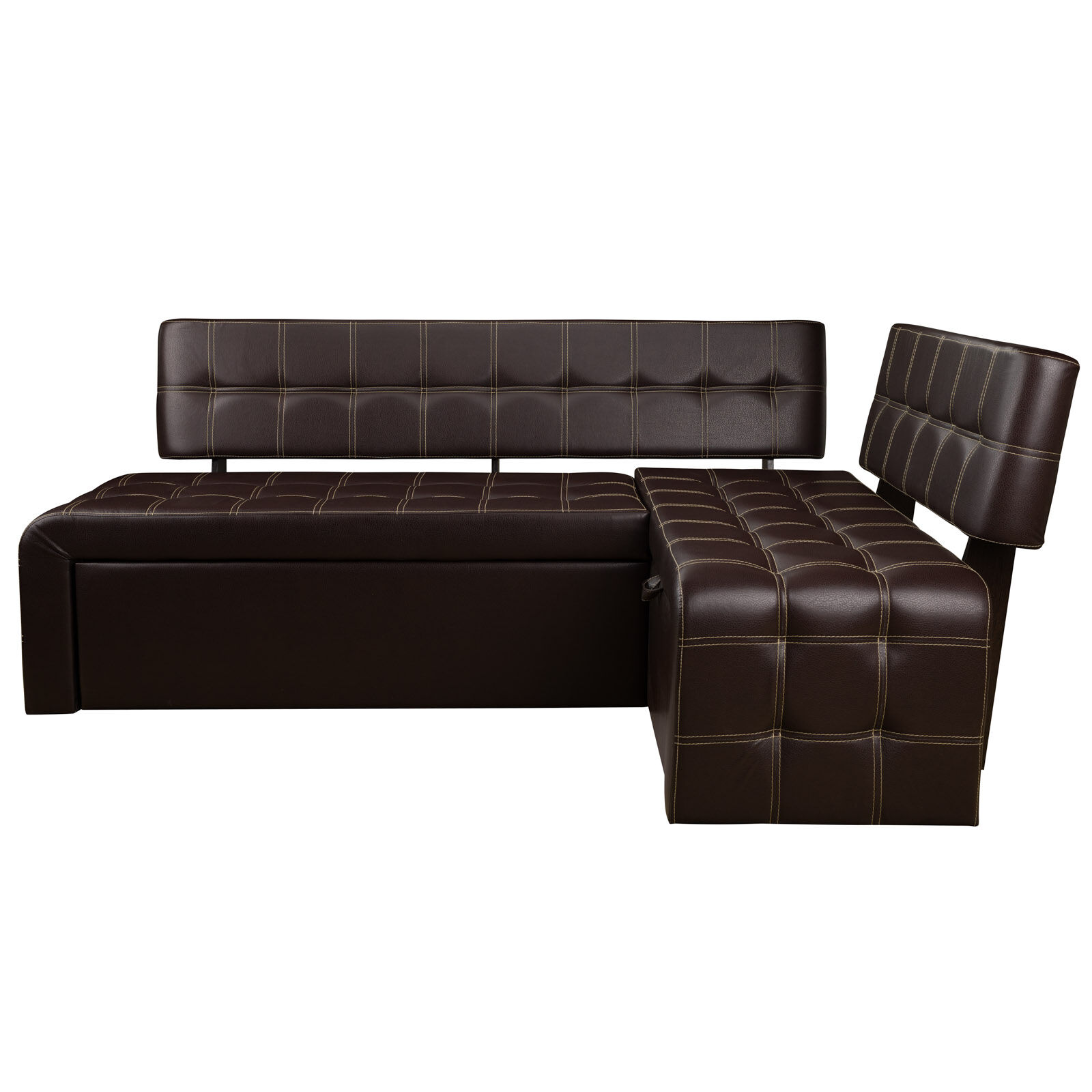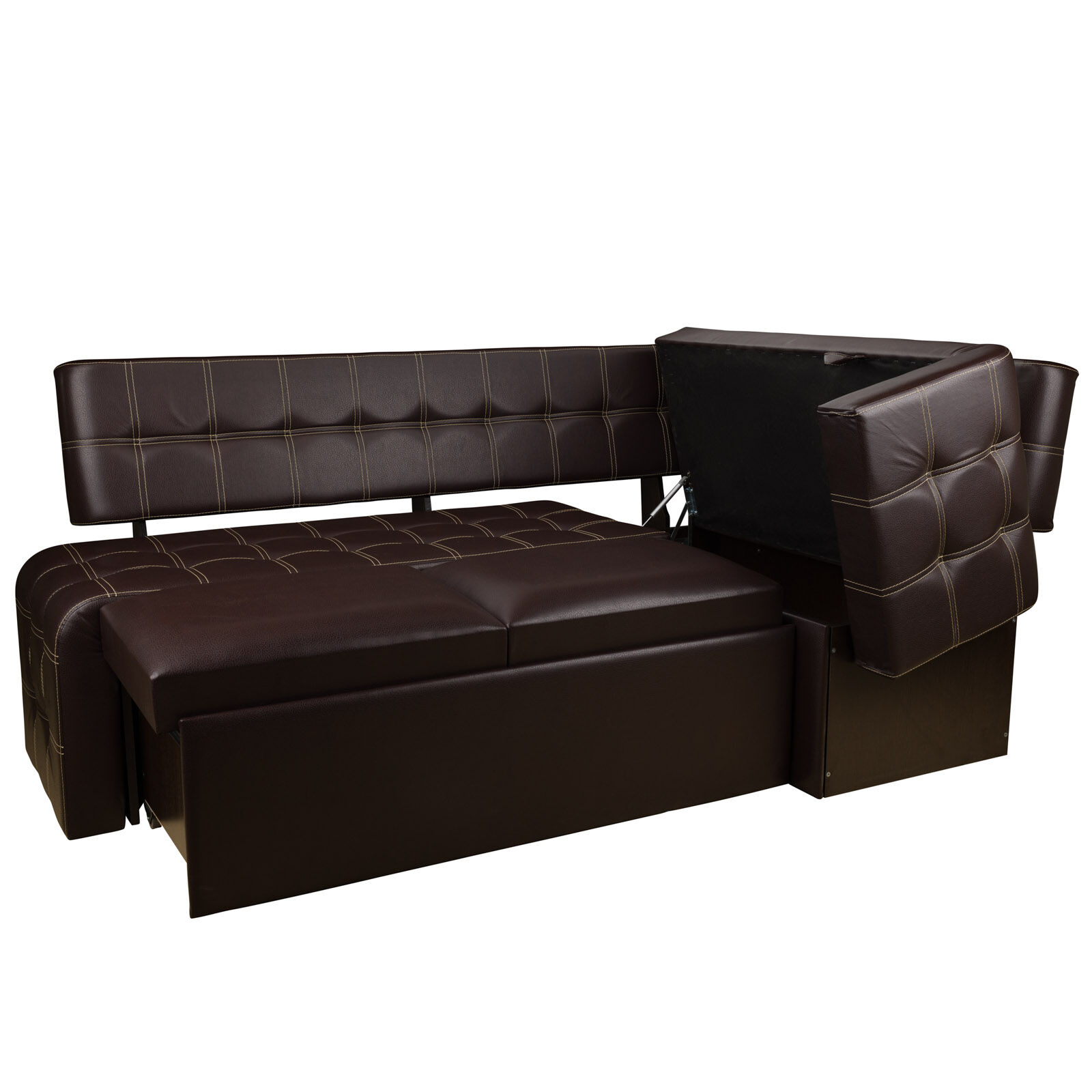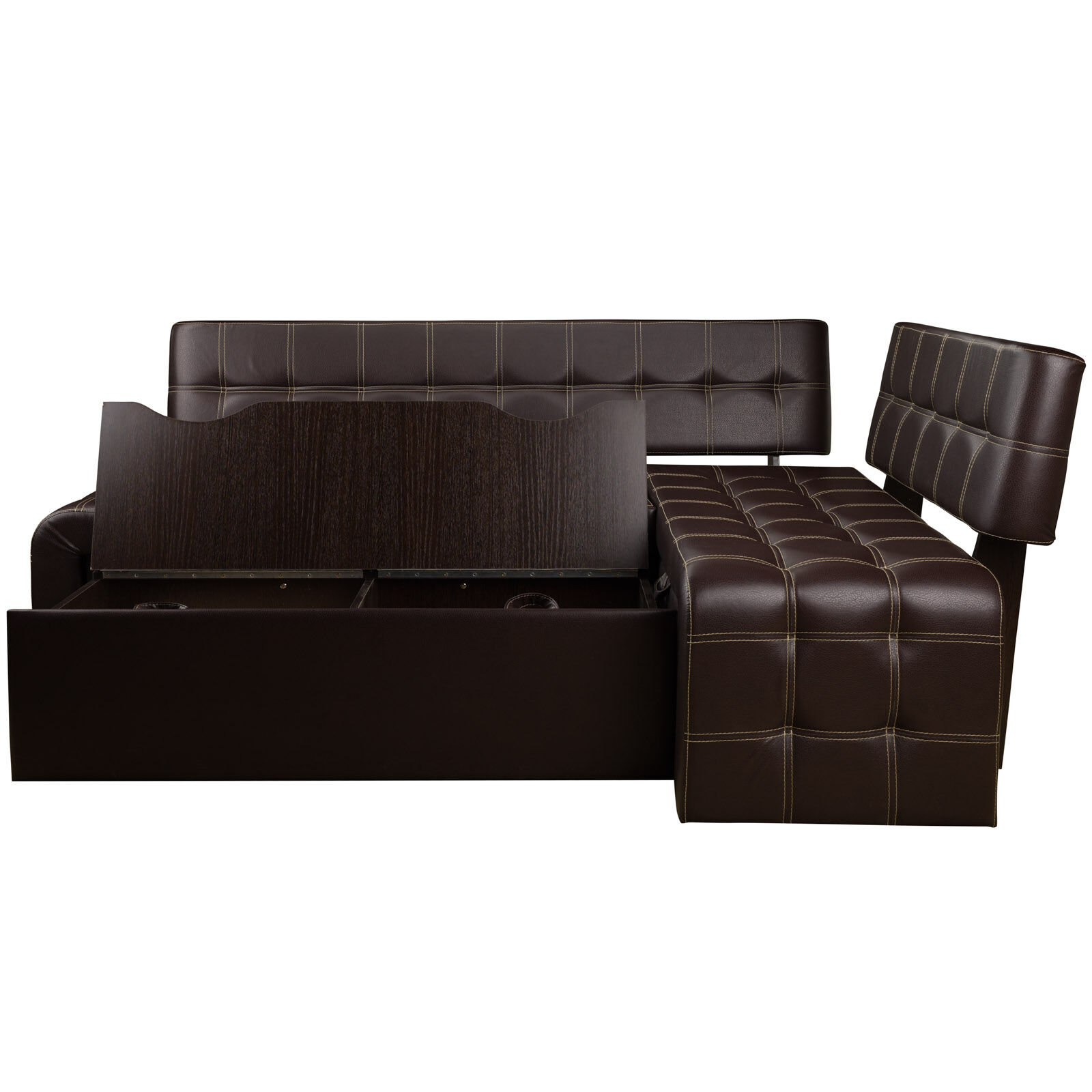 Стильный диван со спальным местом «Прага Венге-Борнео умбер» будет отлично смотреться на современной кухне. Модель снабжена раскладной системой, благодаря чему многофункциональна и практична. Диван удобен как для дневного отдыха, так и для сна. В разложенном виде представляет собой просторное спальное место. Изготовлен из прочных, экологичных материалов. Обит экокожей кремового цвета. Украшен двойной отстрочкой. В угловой части располагается короб для хранения постельного белья. «Мебель поставляется в разобранном виде».