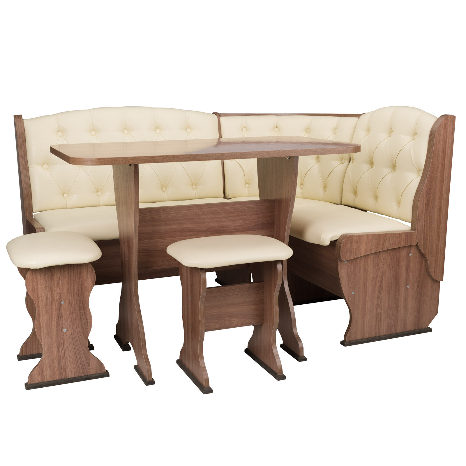 Стильный и современный кухонный уголок «Орхидея Люкс Шимо ясень темный-Борнео крем1-Шимо ясень темный » состоит из углового дивана с двумя ящиками, обеденного стола и двух кухонных табуретов. Диван легко вмещает три или четыре человека, а дополнительными местами у обеденного стола станут удобные табуреты с мягкой обивкой. Для надежности и практичности использования столешница покрыта термостойким пластиком. Функциональный набор станет отличным выбором для обустройства кухни. Угловой диван можно собрать как на правую, так и на левую сторону. «Мебель поставляется в разобранном виде».