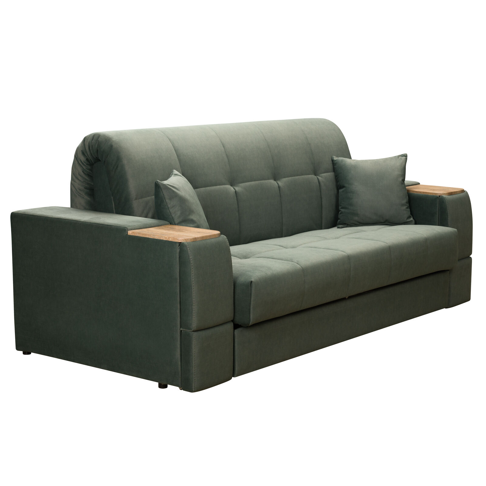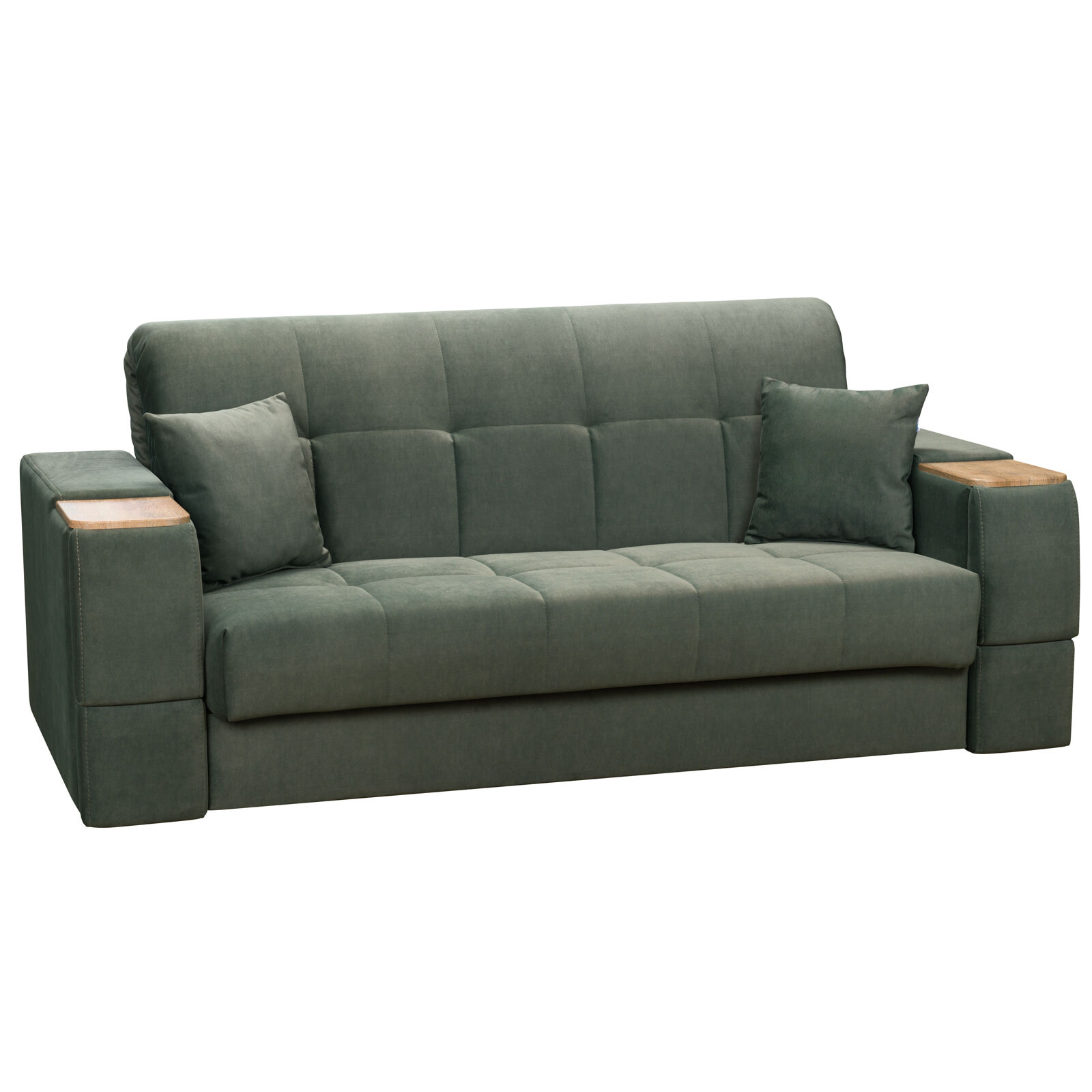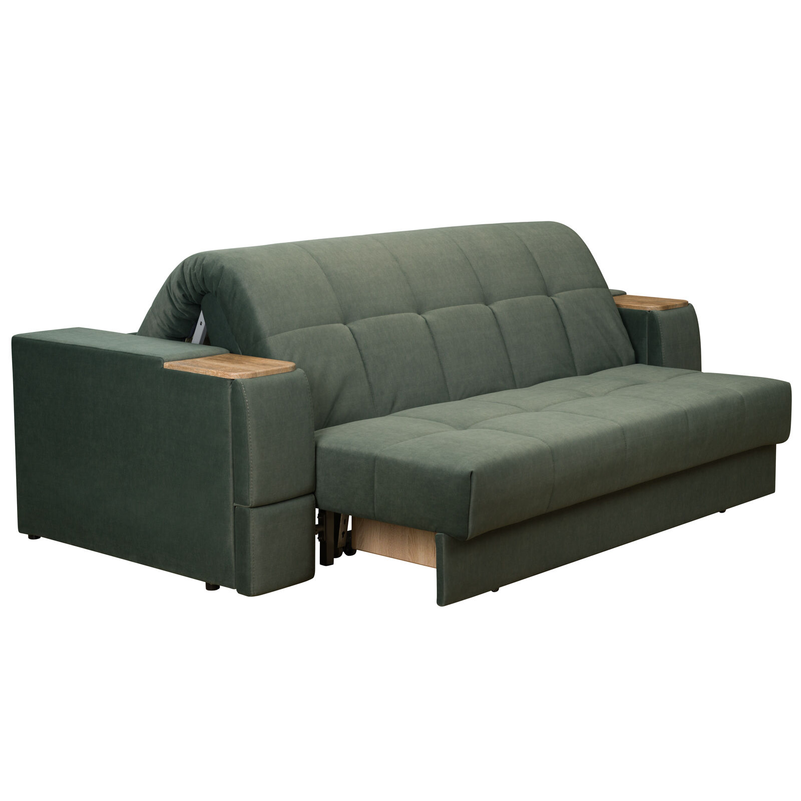 Диван Токио 4 БД №165 ELEFANT 09 Дуб Сонома. Оснащен выдвижным столиком из подлокотника, что позволяет комфортно отдохнуть после рабочего дня. Другой подлокотник оборудован выдвижными ящиками для хранения различных вещей. «Мебель поставляется в разобранном виде».