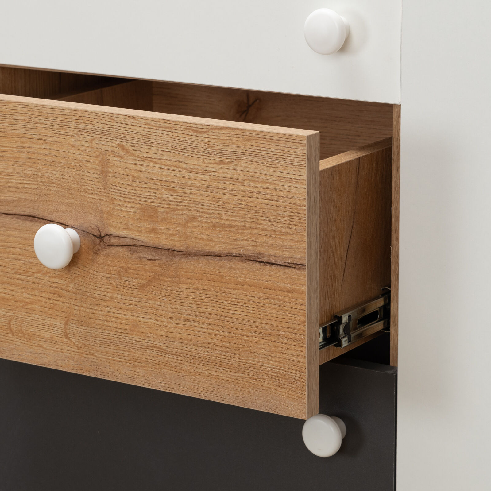 Шкаф МЦН Лойс 82 Дуб золотистый Белый Графит функциональный и удобный для книг, поможет систематизировать хранение учебников и другой литературы. Чтобы было проще найти нужную книгу, верхний фасад шкафа выполнен из прозрачного стекла. В выдвижном ящике на шариковых направляющих удобно хранить разные мелочи и аксессуары. За нижним глухим фасадом - ниша с полочкой, которая устанавливается на скрытые полкодержатели. Верхний и нижний фасады можно перенавесить на левую и на правую стороны. «Мебель поставляется в разобранном виде».