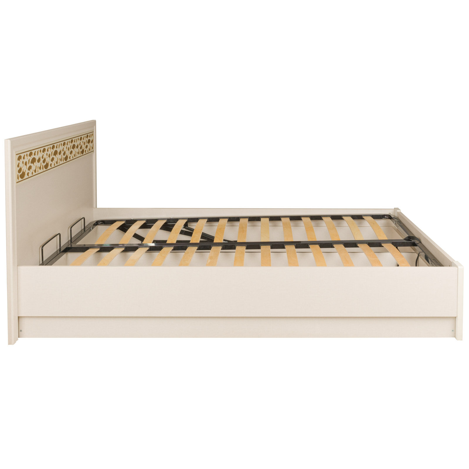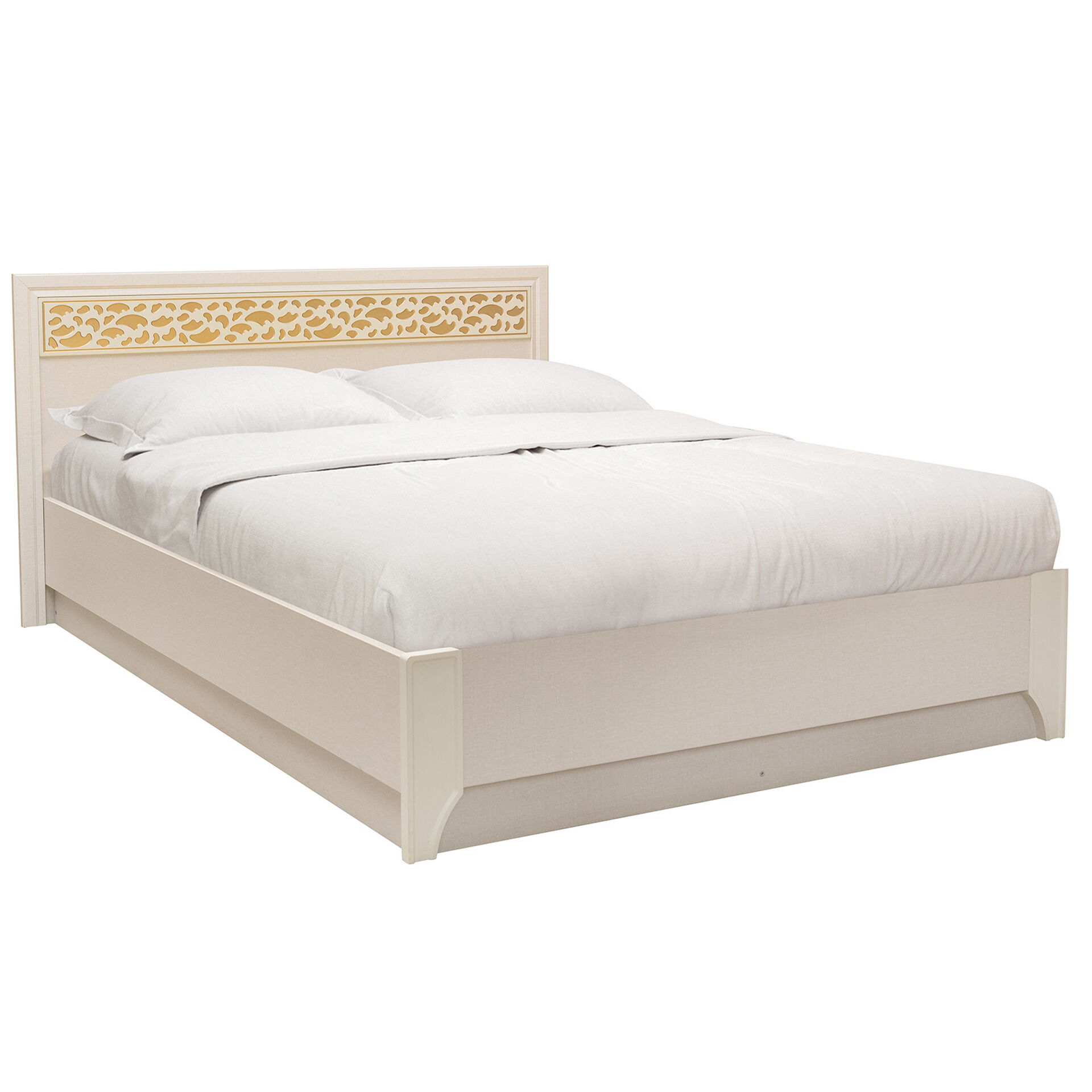 Кровать-Твист поможет создать роскошный интерьер, который долгие годы останется модным. Благодаря рамочным фасадам, оттенённым бронзовым напылением и ажурной вставке смотрится роскошно, респектабельно и благородно. Кровать производится с ортопедическим основанием, состоящим из деревянных ламелей с центральной пятой опорой для максимально комфортного сна. «Матрас в комплект не входит». «Мебель поставляется в разобранном виде».