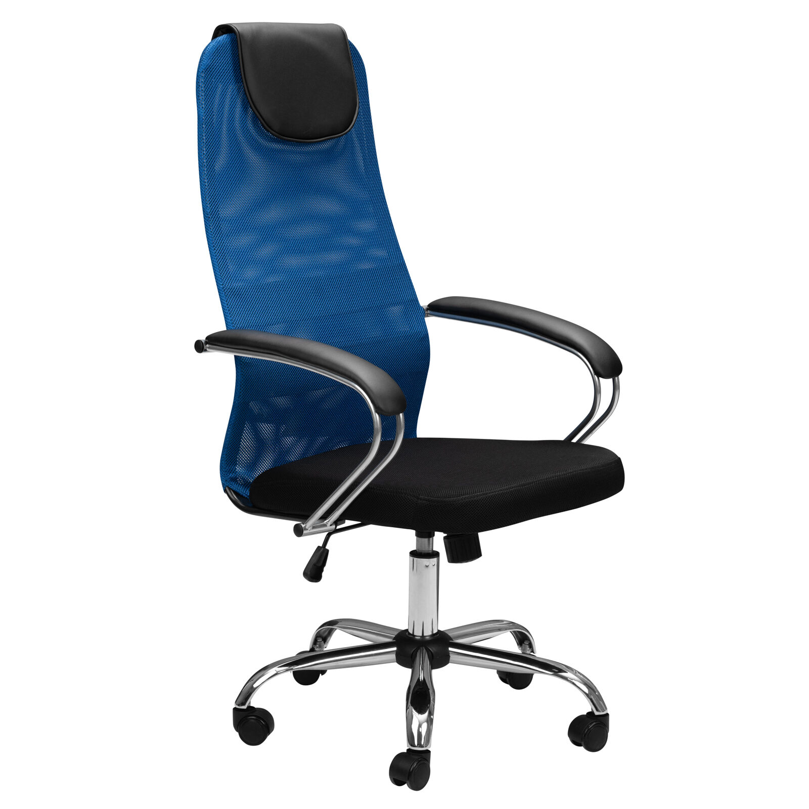 Кресло офисное «РК 162 TW Синий подл.хром крестовина хром». Синхромеханизм со смещенной осью качания и возможностью фиксации в нескольких положениях Подлокотники металлические с накладками из искусственной кожи. Регулировка высоты-газлифт. Крестовина хром. «Мебель поставляется в разобранном».