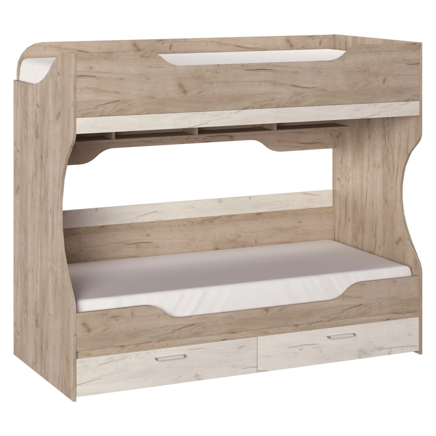 Кровать двухъярусная Лацио Дуб Серый Крафт Дуб Белый Крафт с лесницей