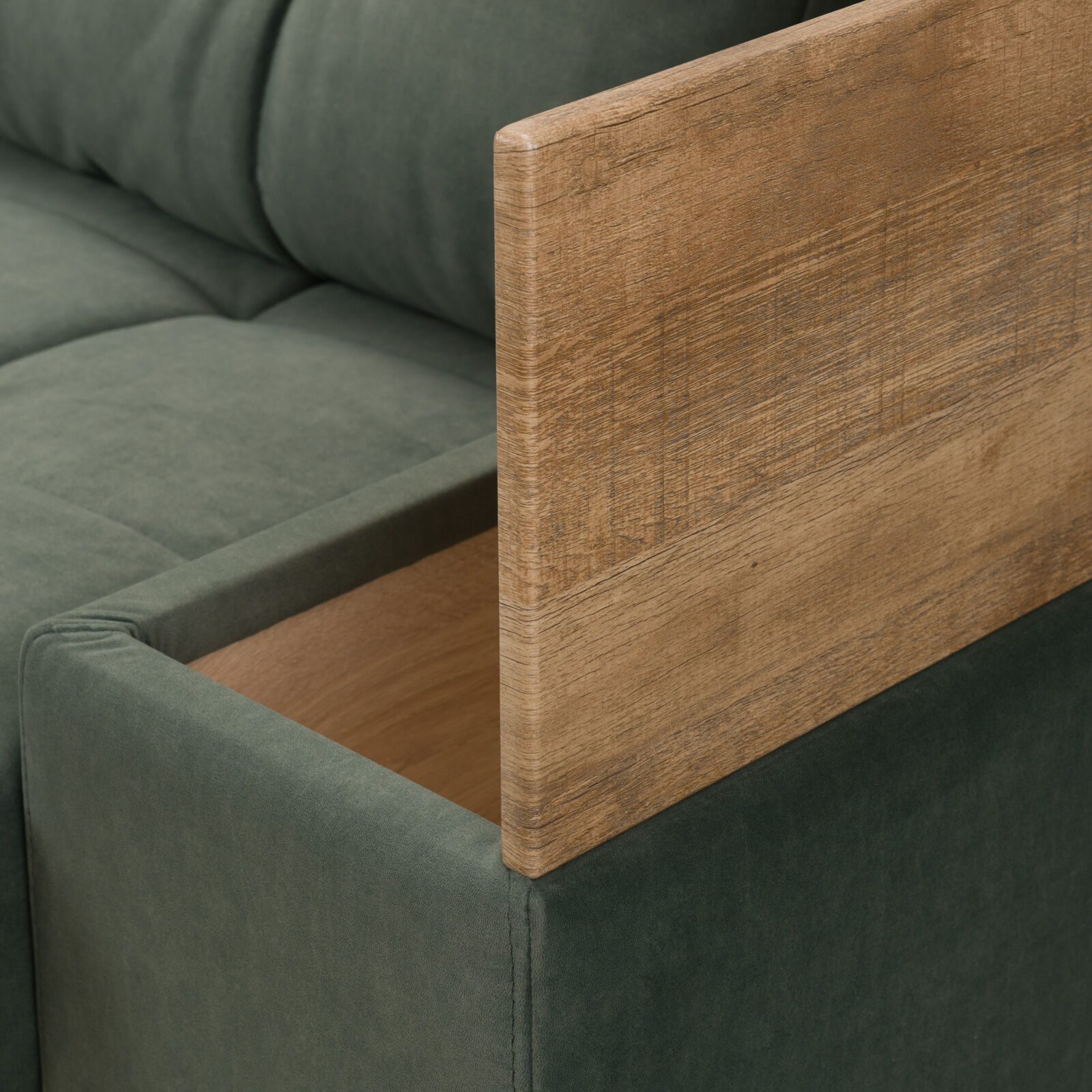Диван «Дакар 10 широкий локоть правый 1 БД ELEFANT 09 Дуб дымчатый»- используется улучшенная модификация механизма «выкатная книжка» с роликами на выдвигаемой части, облегчающими процесс раскладывания и двумя положениями фиксации спинки. Специальная простежка чехла не позволяет дивану утратить свою форму в процессе эксплуатации. «Мебель поставляется в разобранном виде».
