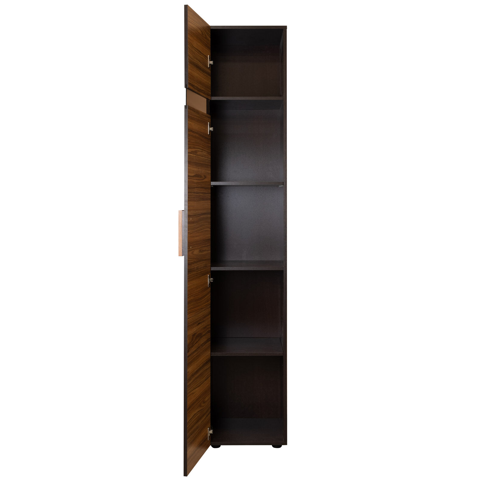 Шкаф для белья 2 из модульной коллекции Hyper выполнен из ЛДСП в сочетании тонировок Венге/Палисандр. Высокий, компактный шкаф позволит установить его даже в небольшой прихожей. Фасад декорирован стеклянной вставкой. Наполнение шкафа - полки.
