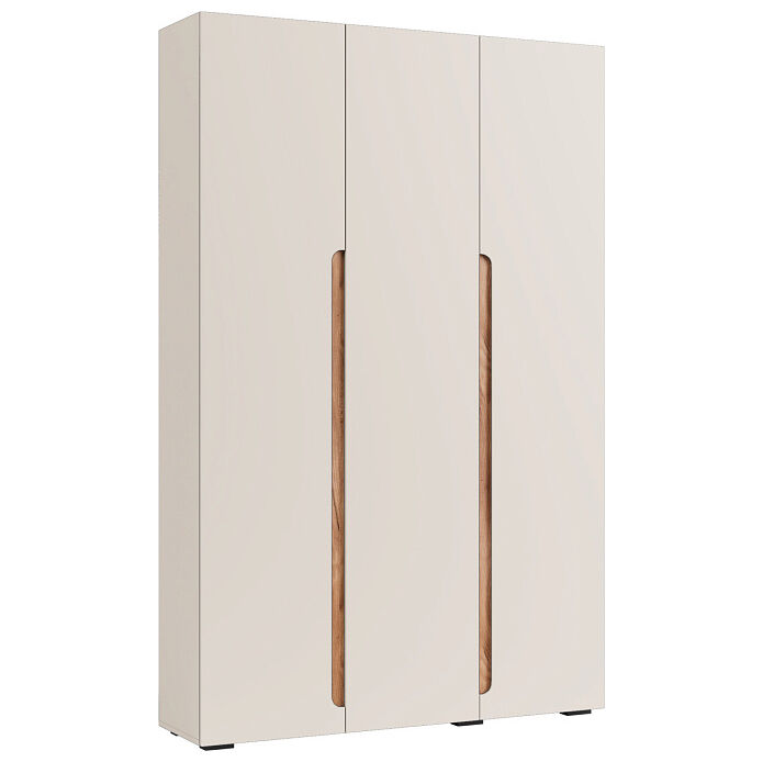 Шкаф 3х створчатый «Валенсия 600 Кашемир Софт Сатьяго» - выполнен в стиле модерн. Основным декоративным элементом и украшением шкафа является выемка контрастного цвета на фасаде. Вертикальная декоративная выемка зрительно увеличивает высоту пространства и служит ручкой двери. «Мебель поставляется вразобранном виде»,