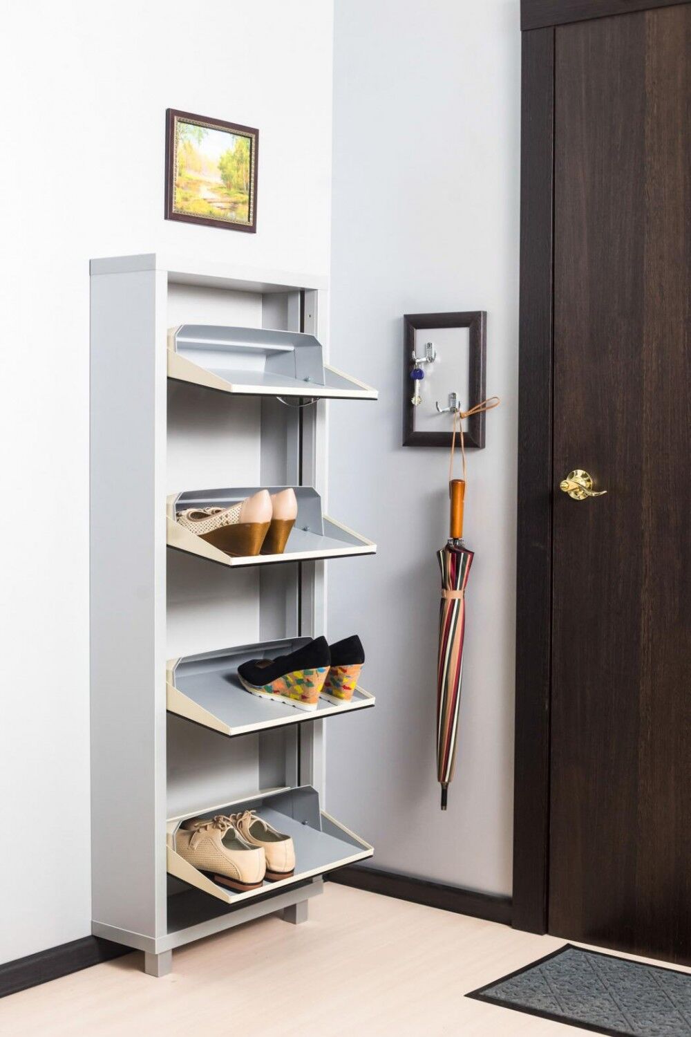 Шкаф обувной Айрон Люкс зеркало 4 – это идеальное решение для хранения обуви, которое не только спасет прихожую от хаоса, но и украсит её. Изготовлена обувница из такого высококачественного материала как ЛДСП, отличающегося надежностью и высокой прочностью. Система лотков: оцинкованный лист с полимерным покрытием.