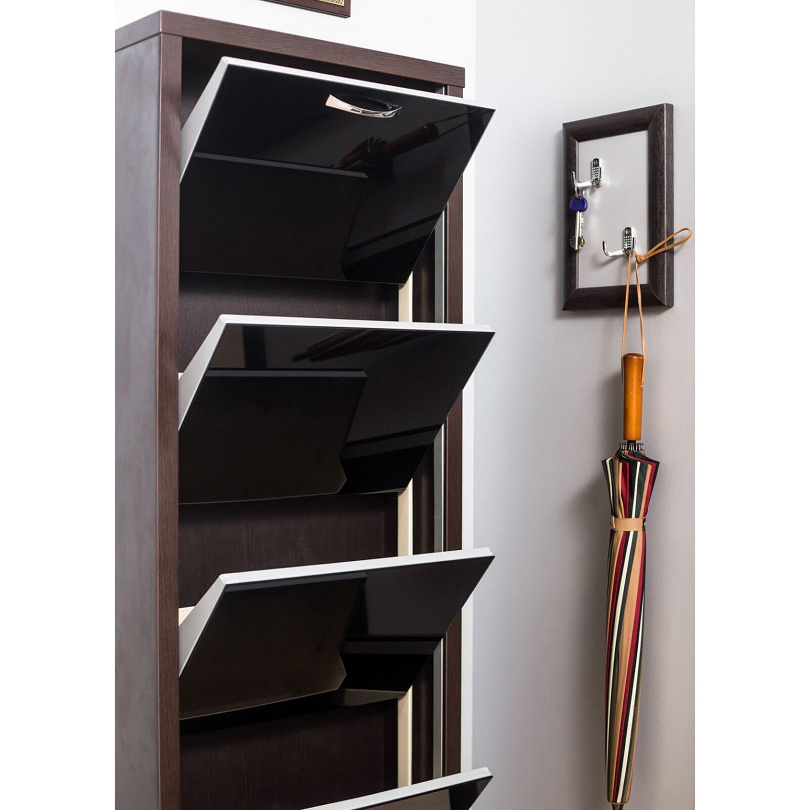 Обувной шкаф «Айрон Люкс 4 венге-стекло черное» представляет собой весьма вместительную и многофункциональную мебель. Она сочетает все необходимые функции, которые позволяют удобно и аккуратно хранить и размещать около 8 пар обуви одновременно. Для надежности можно закрепить обувницу к стене через специальные технологические отверстия. Система лотков: оцинкованный лист с полимерным покрытием.