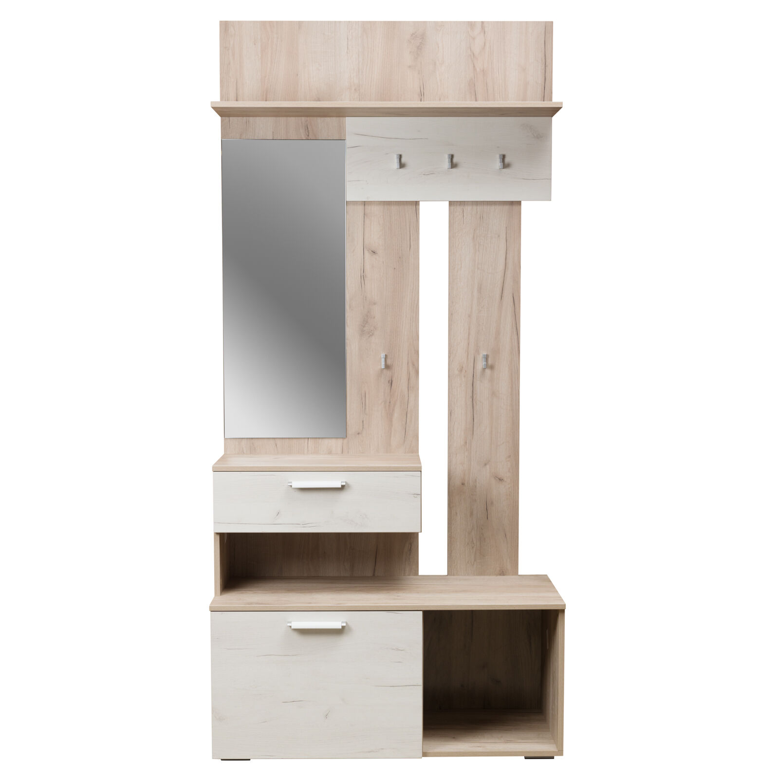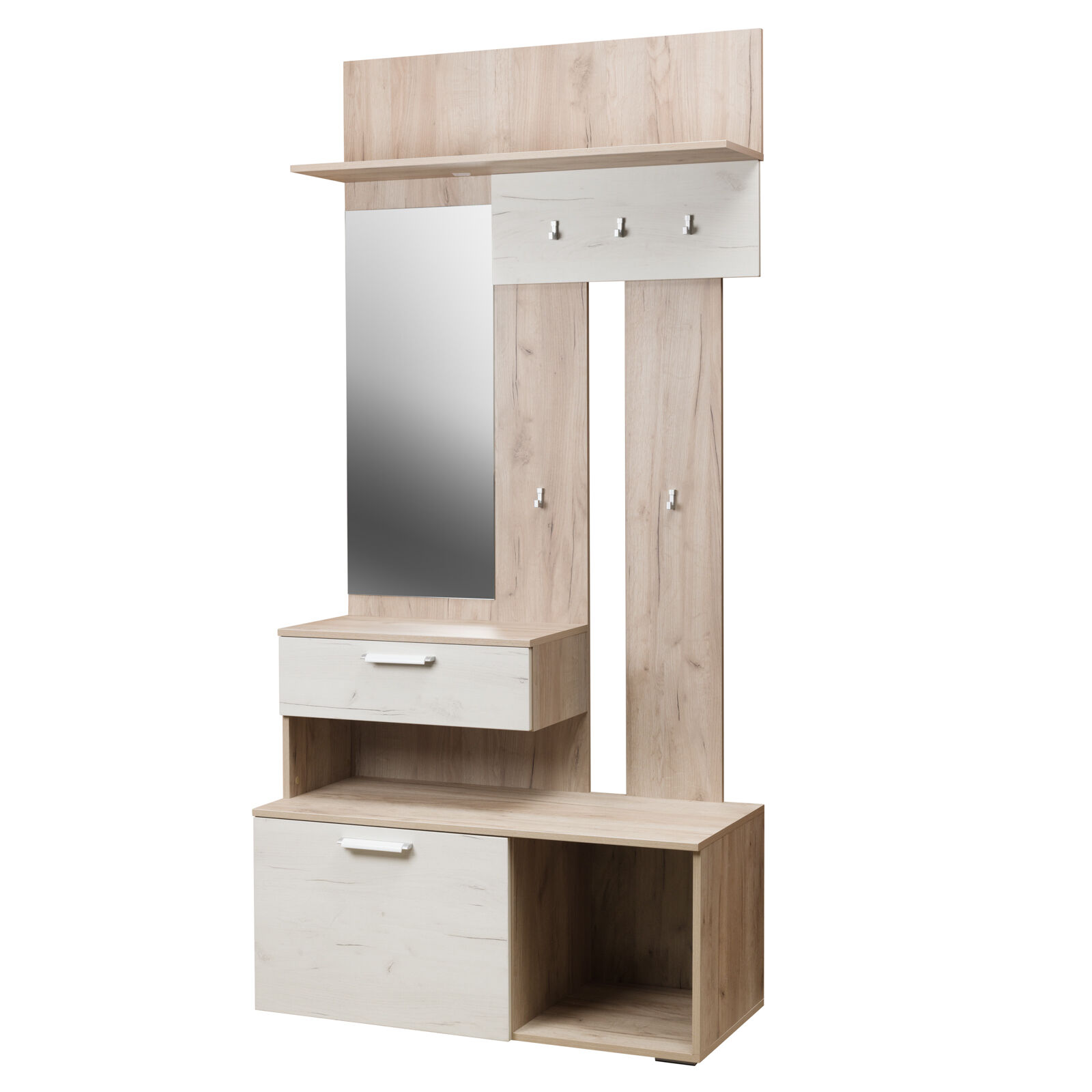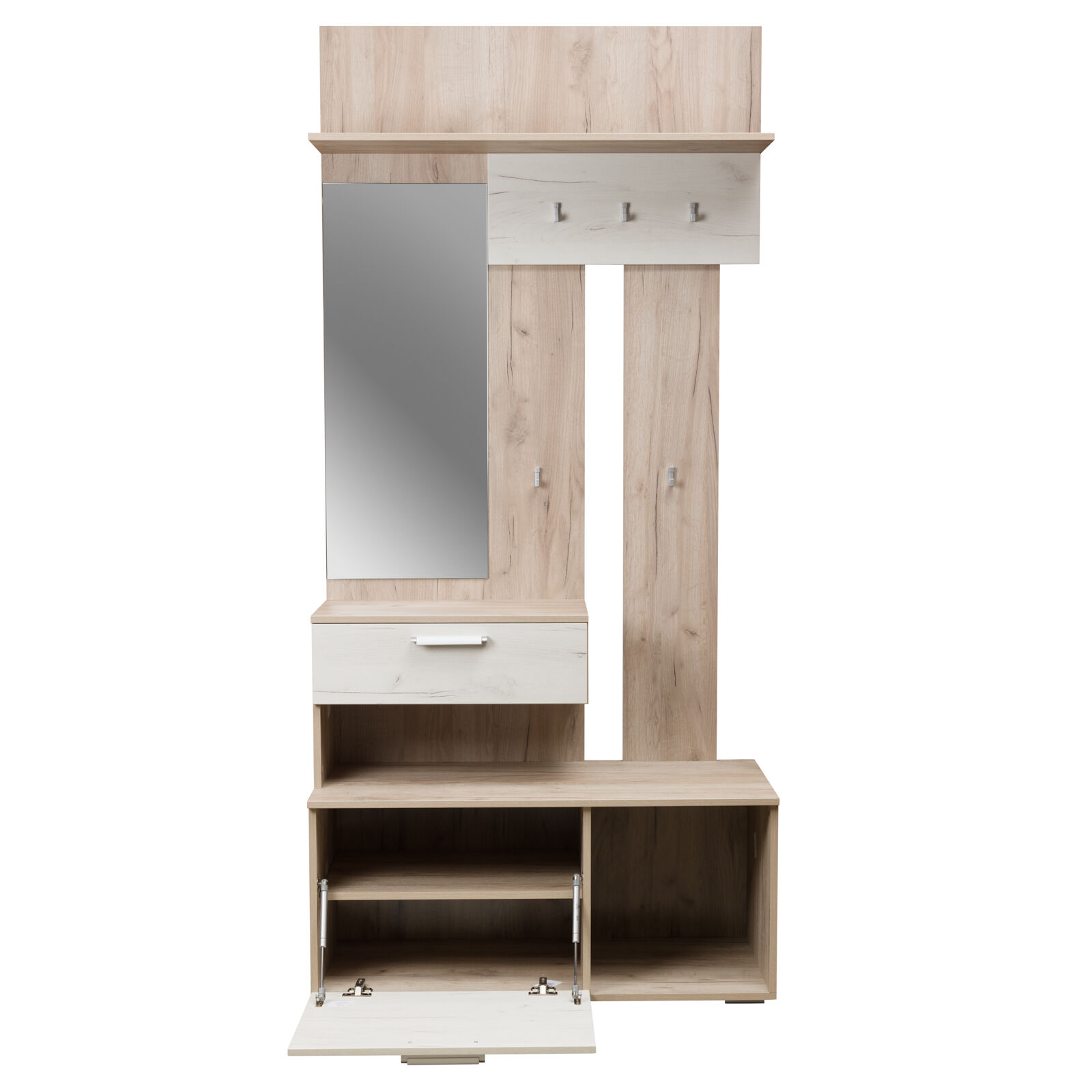 Прихожая Лацио Дуб Серый Крафт Дуб Белый Крафт. Петли с доводчиком. Полновыкатные направляющие. «Мебель поставляется в разобраном виде»