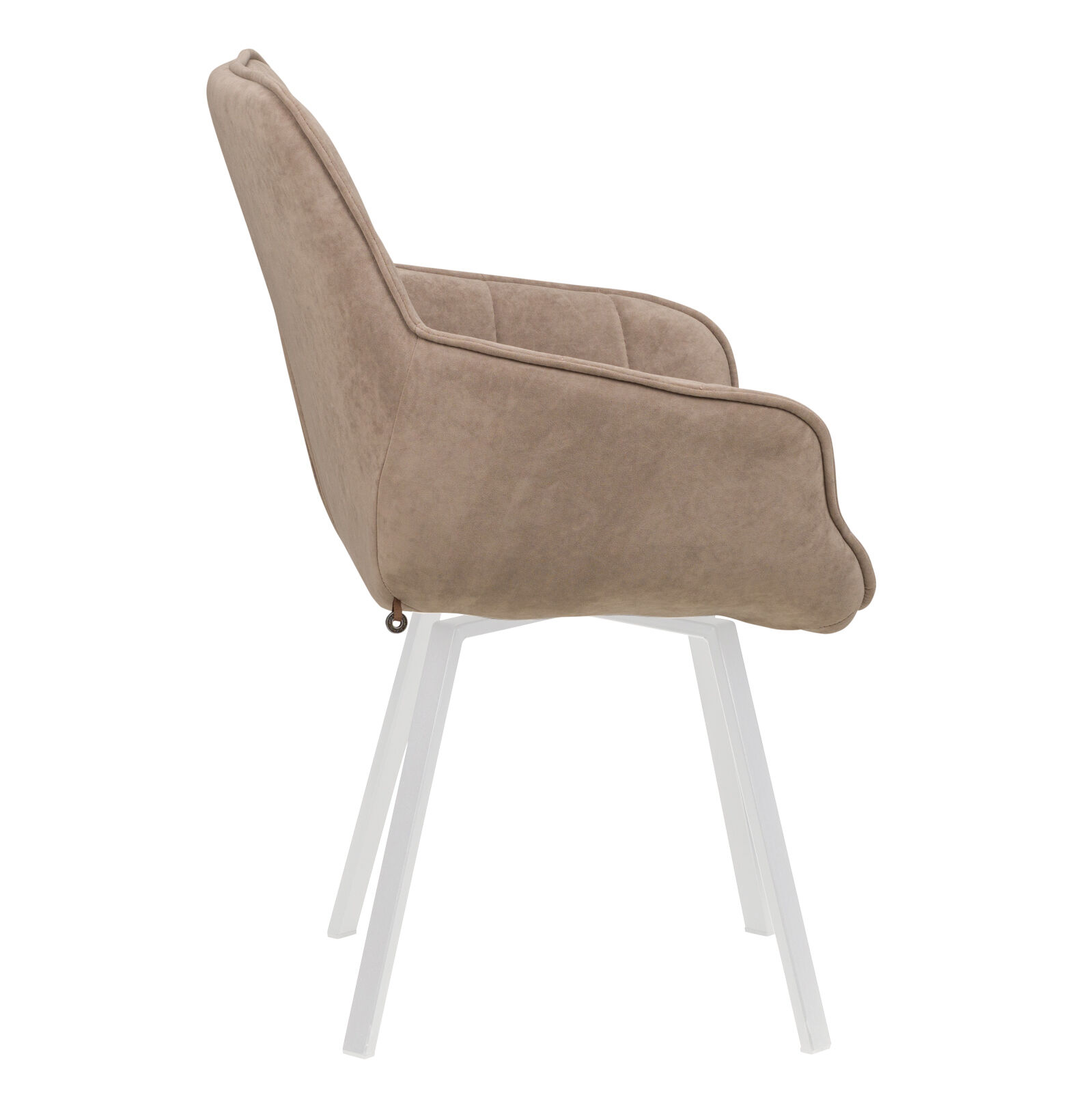 Стул «ROMEO с поворотным механизмом Белый Latte LUX b5» с подлокотниками подходит для гостиной или кухни в стиле лофт, индастриал, сочетается с деревянными и керамическими столами на металлических опорах. Спинка и сиденье модели декорированы квадратной строчкой. Крестообразная рама с болтовым креплением элементов отвечает за прочность модели. Сплошная спинка, мягкое квадратное сиденье и подлокотники дают максимальный комфорт при отдыхе. Специальный механизм обеспечивает поворот кресла.