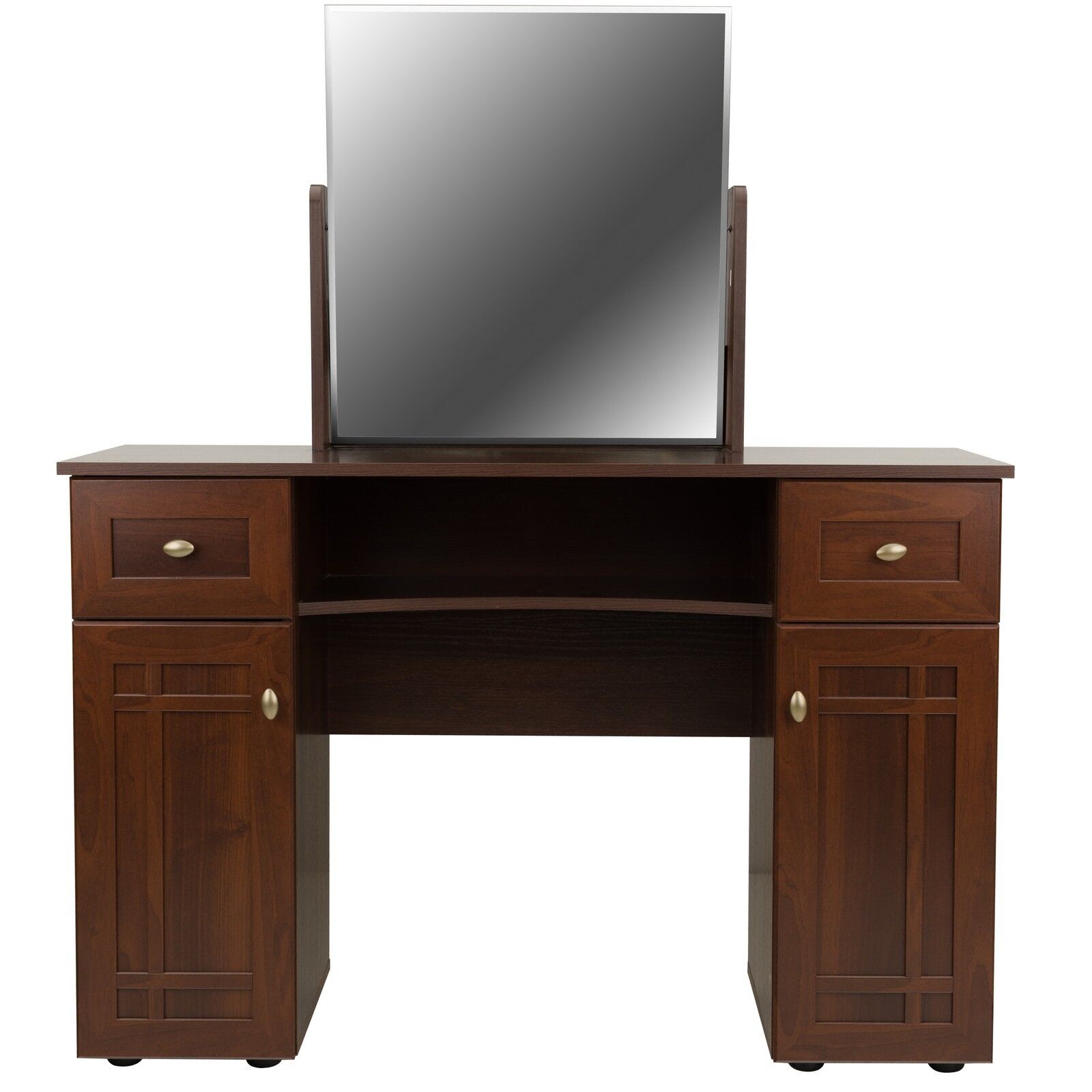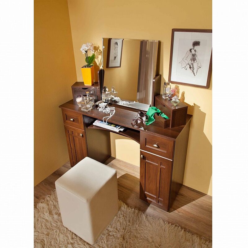 Благодаря широкой столешнице за столом будет удобно расположиться, чтобы сделать макияж. В выдвижные ящики поместятся различные мелочи и косметика,а количество ящиков можно увеличить - установив дополнительные ящики по бокам столешницы.