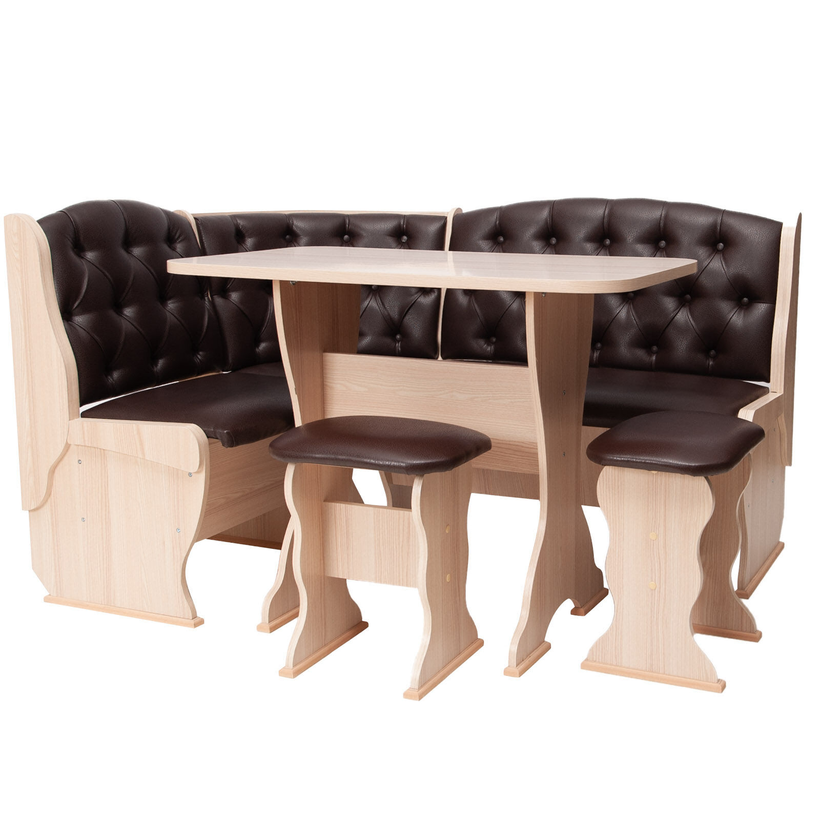 Стильный и современный кухонный уголок «Орхидея Люкс Ясень-Борнео Умбер-Ясень» состоит из углового дивана с двумя ящиками, обеденного стола и двух кухонных табуретов. Диван легко вмещает три или четыре человека, а дополнительными местами у обеденного стола станут удобные табуреты с мягкой обивкой. Для надежности и практичности использования столешница покрыта термостойким пластиком. Функциональный набор станет отличным выбором для обустройства кухни. Угловой диван можно собрать как на правую, так и на левую сторону. «Мебель поставляется в разобранном виде».