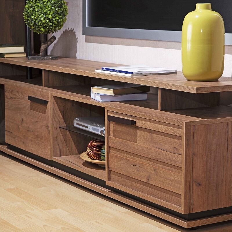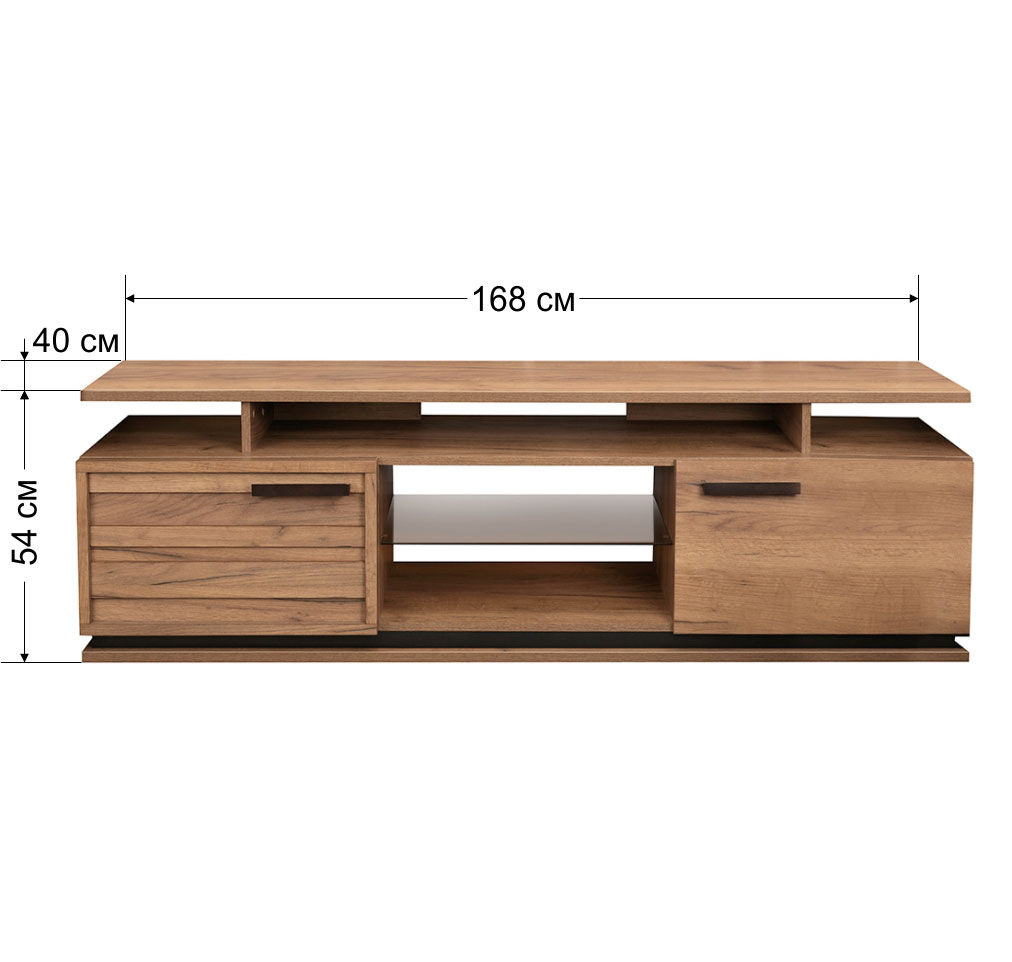 Стильная и аккуратная тумба приятного древесного оттенка гармонично впишется в интерьер гостиной. Визуально легкая конструкция не загромождает пространство и делает его более функциональным. «Мебель поставляется в разобранном виде».