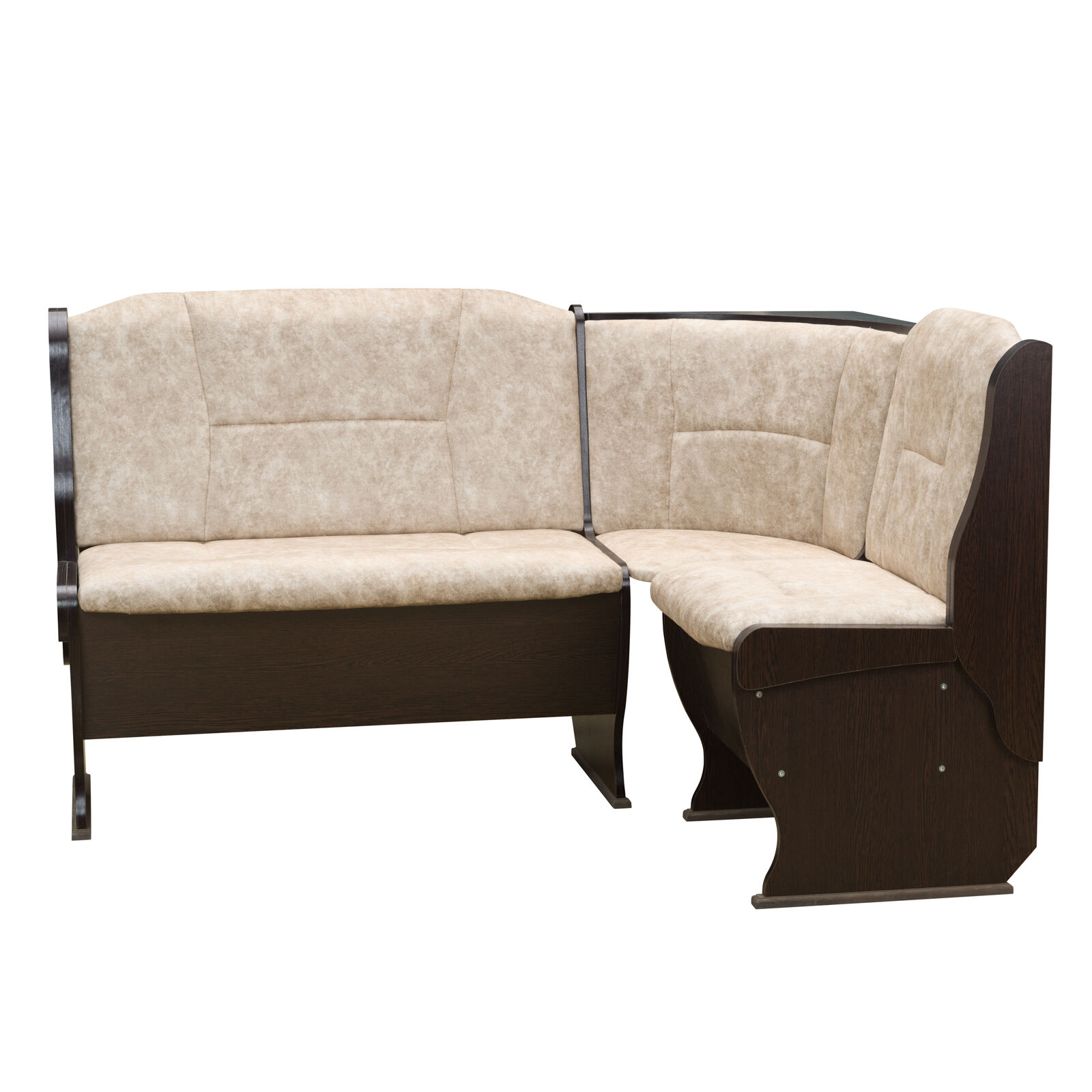 Стильный и современный кухонный уголок «Орхидея Венге-Латте» состоит из углового дивана с двумя ящиками, обеденного стола и двух кухонных табуретов. Диван легко вмещает три или четыре человека, а дополнительными местами у обеденного стола станут удобные табуреты с мягкой обивкой. Для надежности и практичности использования столешница покрыта термостойким пластиком. Функциональный набор станет отличным выбором для обустройства кухни. Угловой диван можно собрать как на правую, так и на левую сторону. «Мебель поставляется в разобранном виде».