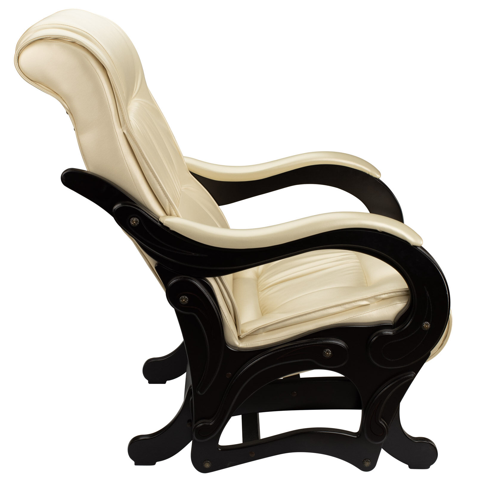 Роскошное кресло-качалка не только украсит любой интерьер, но и подарит незабываемый комфорт. Особый маятниковый механизм делает движения кресла плавными и волнообразными, непохожими на обычное раскачивание. Основание при этом остаётся неподвижным, а конструкция — устойчивой. Благодаря этому пол под мебелью совершенно не портится. Кресло выдерживает нагрузку до 150 кг.