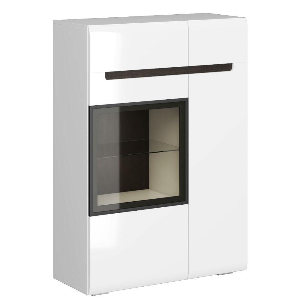 Витрина 2х створчатая малая правая «Стокгольм Белый Белый Глянец» настоящая находка для современной жилой зоны. Нестандартным стилевым решением здесь выступают глянцевые фасады с интегрированными ручками и контрастными вставками. Глянцевые фасады визуально увеличивают пространство, не утяжеляя его. «Мебель поставляется в разобранном виде».