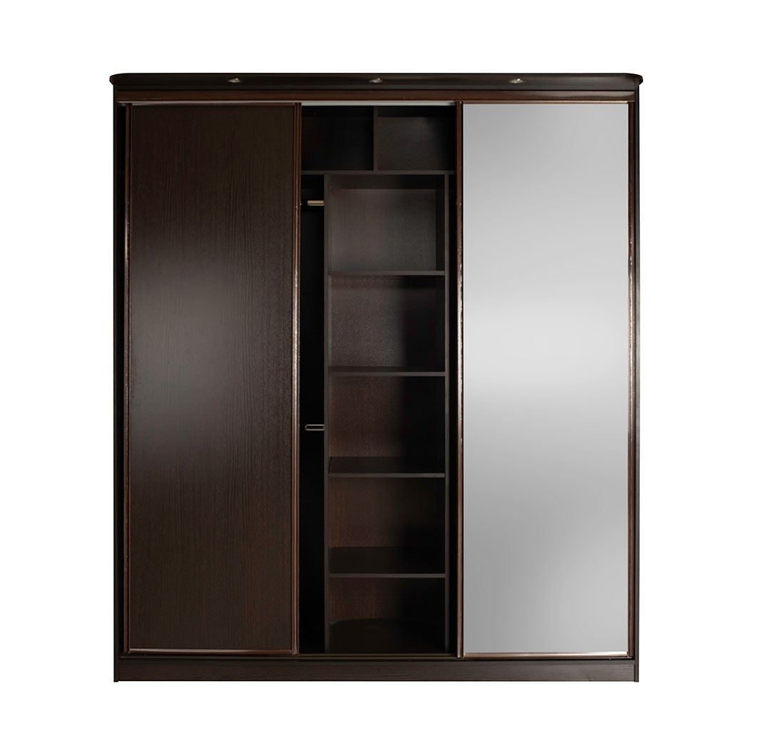 Шкаф-купе 10 Домашний - функциональная и вместительная модель, которая безупречно впишется в любой интерьер комнаты. Продуманное внутреннее наполнение, состоящее из трёх стационарных штанг и полок для белья, позволяет это сделать. Благодаря разделению фасада на 3 двери, брать вещи очень легко. Зеркало центральной двери с обратной стороны проклеено специальной защитной пленкой. Она защитит Вас от осколков, если оно разобьется.