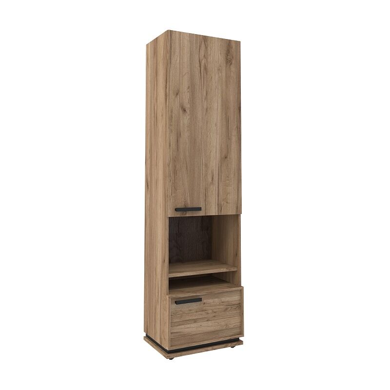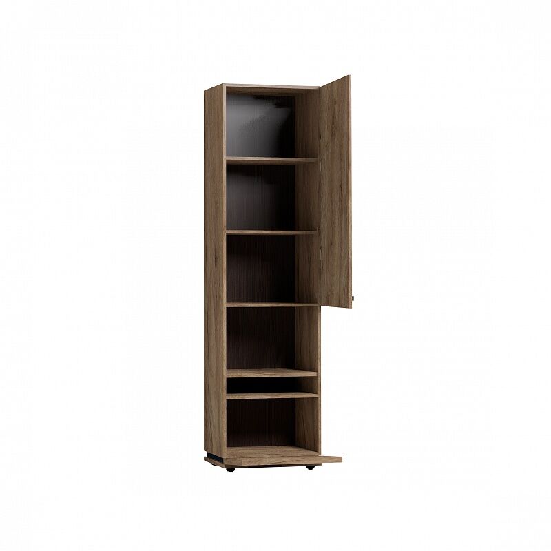 Благородный древесный оттенок шкафа «Nature 1 Дуб табачный Craft-Черный» контрастирующий с черными ручками из массива дерева, подойдет к большинству цветовых решений – мебель будет легко комбинировать с другими предметами. Высокий шкаф МЦН удобен своей функциональностью и эргономичностью конструкции. Регулируемые опоры шкафа позволят компенсировать незначительные неровности пола. «Мебель поставляется в разобранном виде».